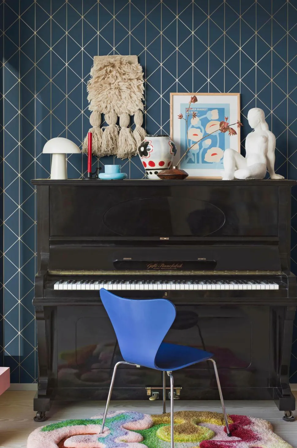 Det grafiske tapet Diamonds geometriske mønster er skandinavisk minimalisme med lidt ekstra. Hver rulle er 10,05 m. Bredde 53 cm. Lige mønsterrapport 17,66 cm. Printet i Sverige på et non-woven materiale. Tapetet er Easyup-mærket, hvilket betyder, at du påfører limen direkte på væggen, og du behøver ikke grunde først.