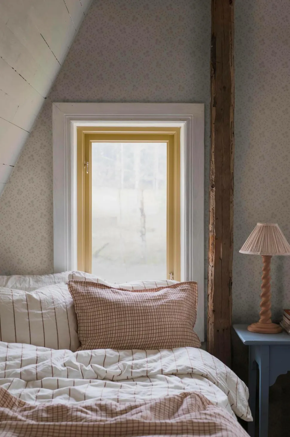 På en varm baggrund med sarte blomster og snoede espalierer er vores idun tapet inspireret af traditionelt broderi. Selv om dette dybtrykte design har en klassisk espalierform, føles stilen meget moderne.