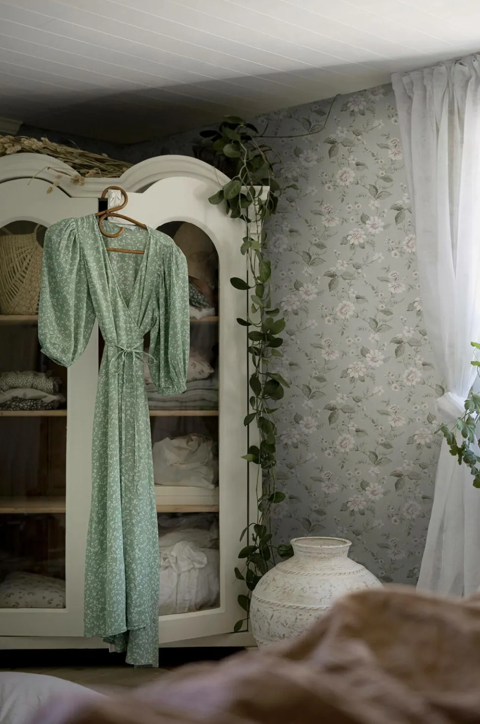 Det lyse, blomstrede tapet Laura’s Cottage er dekoreret med smukke blomsterranker, der leder tankerne hen på en overdådig, engelsk have. Hver rulle er 10,05 m. Bredde 53 cm. Lige mønsterrapport 53 cm. Printet i Sverige på et non-woven materiale. Tapetet er Easyup-mærket, hvilket betyder, at du påfører limen direkte på væggen, og du behøver ikke grunde først.