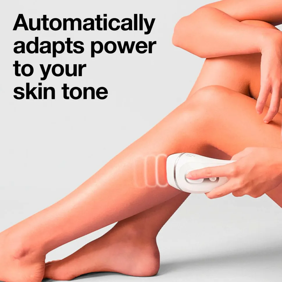 Braun Silk-expert Pro 3 IPL tilbyder effektiv hårfjerning i hjemmet ved hjælp af avanceret IPL-teknologi. På kun 4 uger kan du opnå synligt glattere hud i op til 1 år. Dens SkinPro (SensoAdaptTM)-teknologi tilpasser sig automatisk din hudtone og sikrer optimale resultater og skånsom behandling. Apparatet har en følsom tilstand til sarte områder og kan levere op til 100 lysimpulser pr. minut for omfattende dækning. Sættet indeholder udskiftelige hoveder til krops- og ansigtsbehandling, en Venus-barbermaskine og et praktisk etui. Følg en enkel 4-trins rutine for varig glathed og komfort. Vilkår og betingelser for en udvidet 5-års garanti gælder.