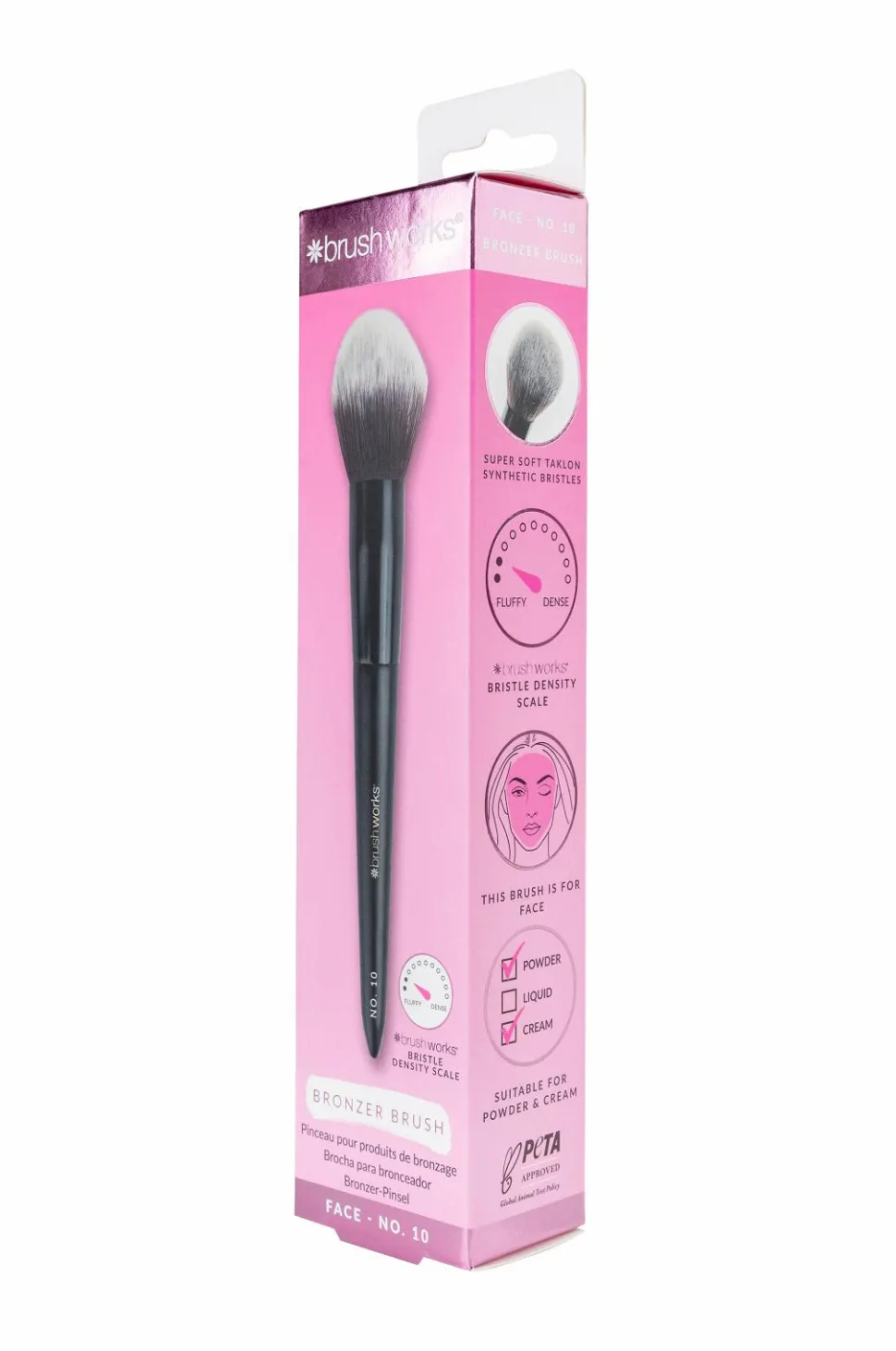Vi præsenterer Brushworks No. 10 Bronzer Brush, en must-have-børste i din makeup-samling til at opnå en strålende og solkysset teint. Denne tilspidsede børste er designet til ubesværet at påføre både pudder- og cremebronzerprodukter og fremhæver ansigtets naturlige konturer for at sikre et fejlfrit bronzet look. Med superbløde syntetiske taklon-børstehår sikrer denne børste, at din bronzer glider glat og jævnt på, samtidig med at den er ekstremt skånsom mod huden.