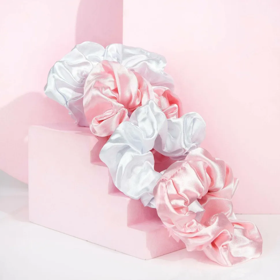 Hold dit hår friskt og i bedst skick med Brushworks Pink and White Satin Scrunchies. Satinmaterialet mindsker friktion og spænding, beskytter håret mod skader og forbedrer hårets sundhed. Disse ultramjuka, lette scrunchies har en elastisk strækning for at sikre dit hår på plads. Denne pakke indeholder 4 rosa og hvide hårscrunchies.