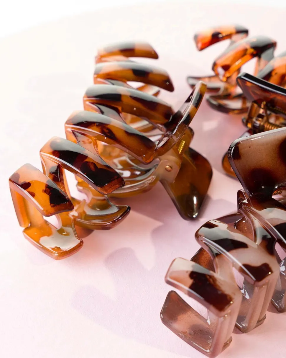 Opgrader din hårplejerutine, og opnå ubesværet stilfuld hårstyling med Brushworks Tortoiseshell Claw Clips. Et must-have-tilbehør til kreative opsætninger, afslappede halv-op-stilarter eller en hurtig og stilfuld løsning til at holde lokkerne på plads. Disse klo-clips er designet med alsidighed i tankerne og er velegnede til forskellige hårtyper og teksturer og passer til selv tykt eller voluminøst hår uden problemer.