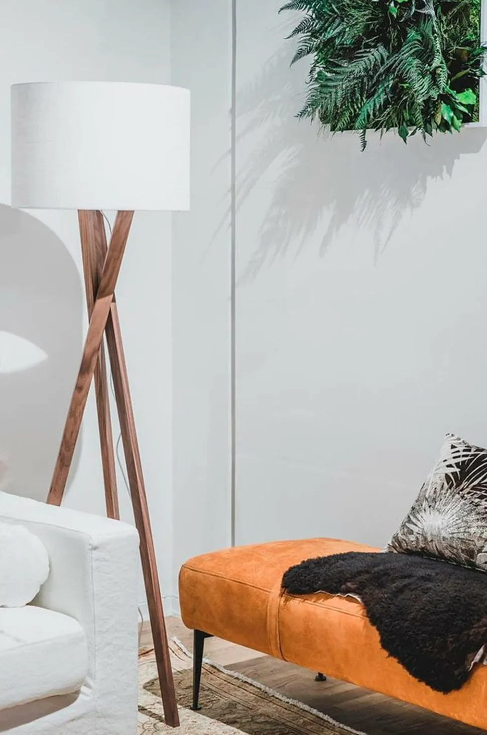 Gulvlampen vega er en massiv lampe på 160 centimeter, som fås i ægte eg og ægte valnød. De krydsede tre ben skaber et stilfuldt twist på den ellers slanke lampe. Øverst på lampen ser vi en smuk hvid skærm, der forstærker enkelheden i denne smukke gulvlampe. Til vega skal du bruge en lyskilde med e27-fatning.
