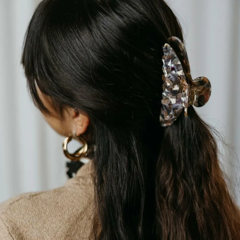 Stor hårklemme som holder håret på plads med sin kraftige klemme. Størrelsen gør, at den passer ekstra godt til længere hår. En skånsom hårpynt, der kan bruges på flere forskellige måder uden at slide håret.