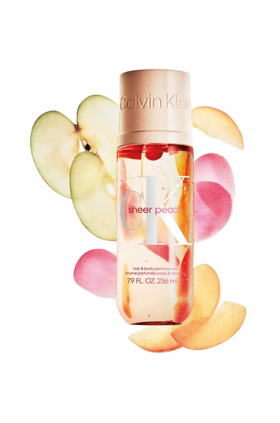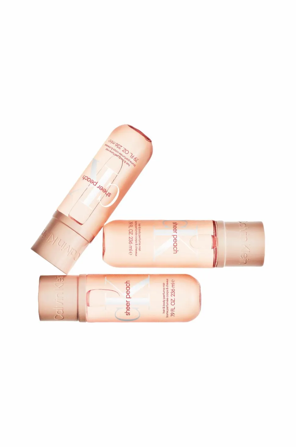 -K Hair & Body Mist Sheer Peach er en unisex duftmist, der omslutter dig som en ekstra hud. Duften er frisk, let og blidt forførende – som soltørret linned eller en frisk brise mod bar hud. En moderne, behagelig duft til hverdagsbrug, året rundt. Kompositionen åbner med moden ferskennektar og saftig nashi-pære – en frugtagtig og indbydende topnote, der flyder over i et luftigt hjerte af vandlilje, gourmand-akkord og blomsteragtige nuancer med Muganet™, der tilføjer lys og karakter. Basen er funderet i bourbonvanilje, lyserød mos og cremet sandeltræ, blandet med cashmeran og Orcanox™ for en blød, varm finish, der bliver hængende på huden. Den fjerlette formel efterlader huden blød og fugtet og gør Sheer Peach til den perfekte daglige mist.