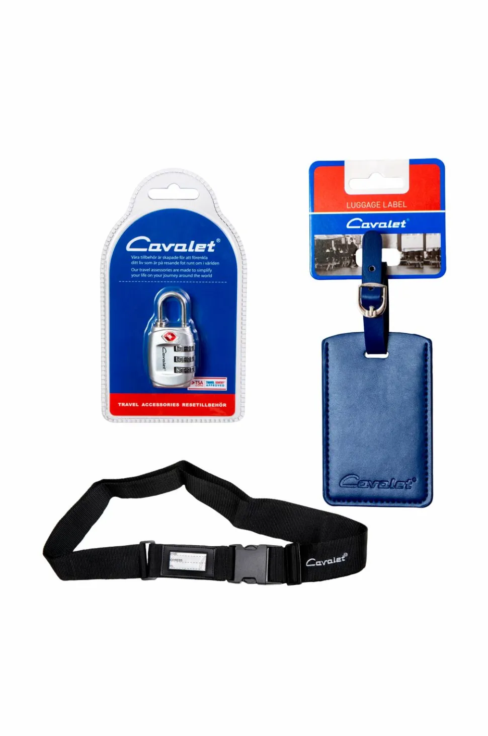 • Blåt bagagemærke, der nemt sættes på tasken