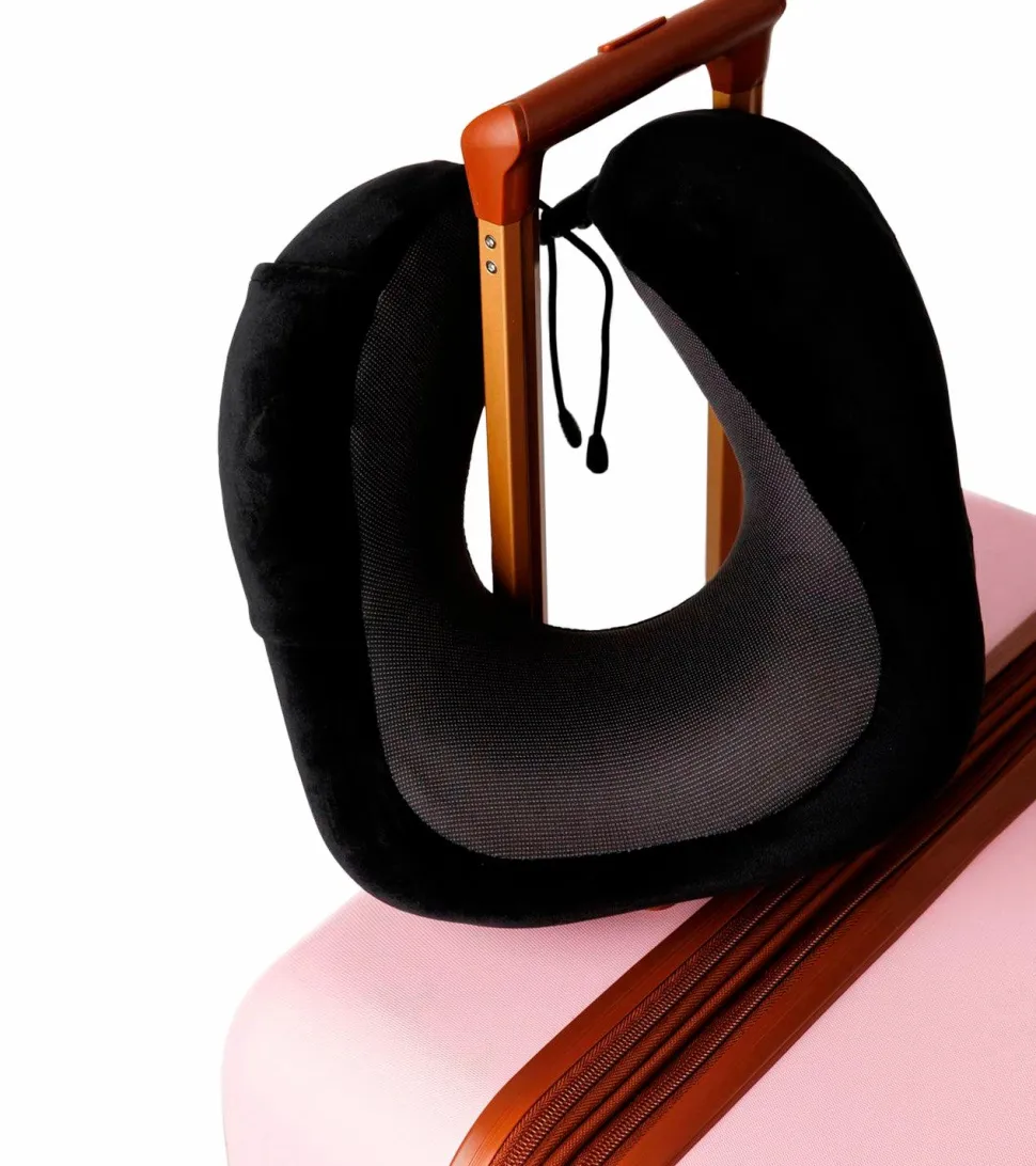 • Har en ergonomisk nakkepude i memory foam med justerbar snor og indbygget lomme