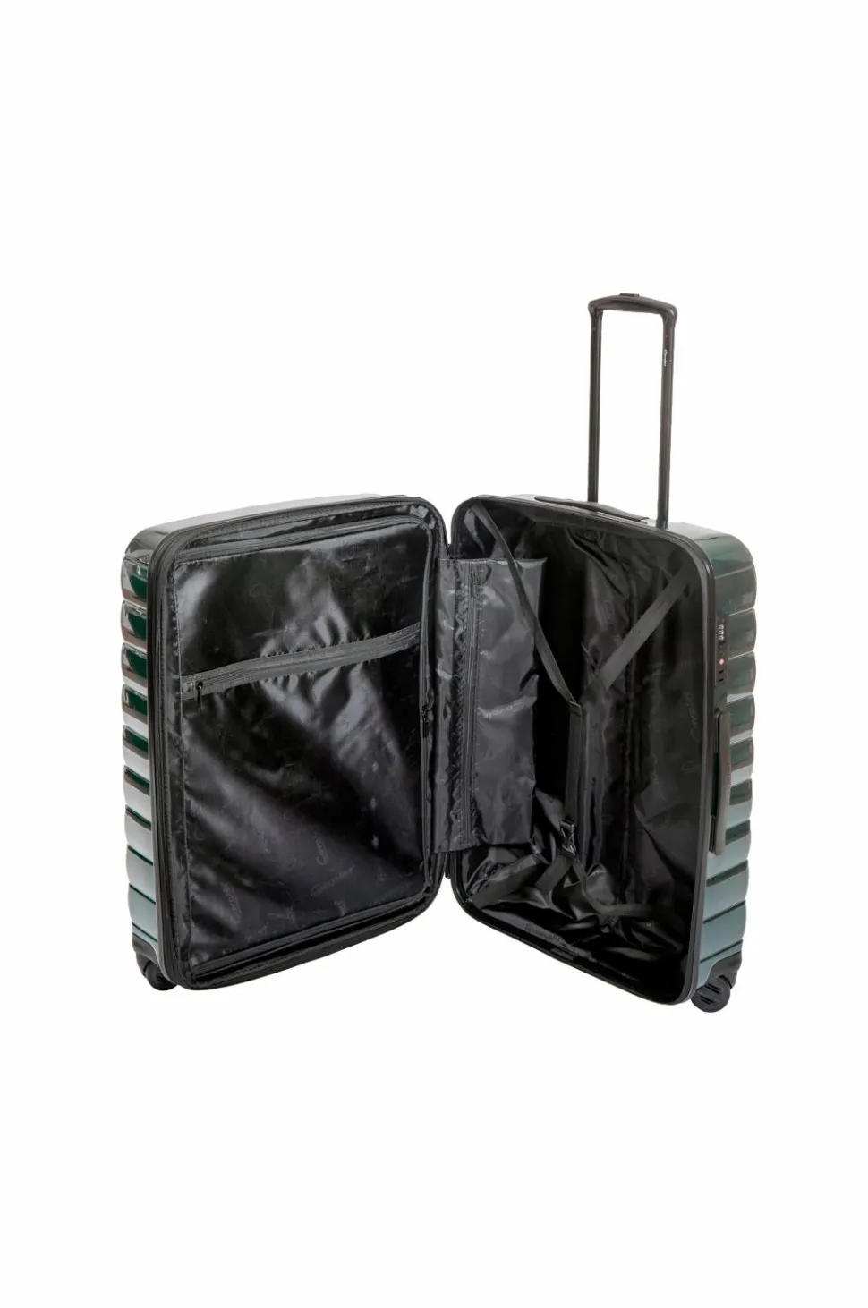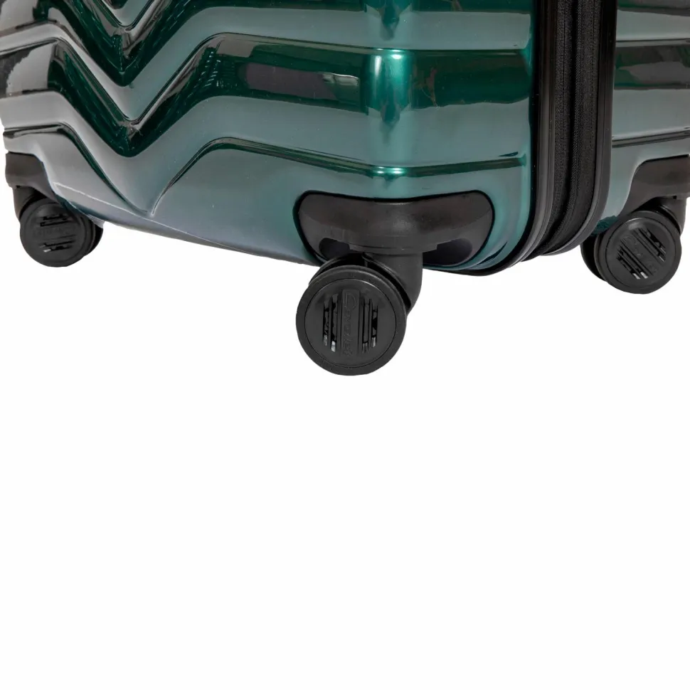 Fuldt foret interiør med pakkestropper og skillevægge, som gør det nemmere for dig at pakke. Fastmonteret TSA-lås. Fire lydløse hjul. Fuldt integreret teleskophåndtag.