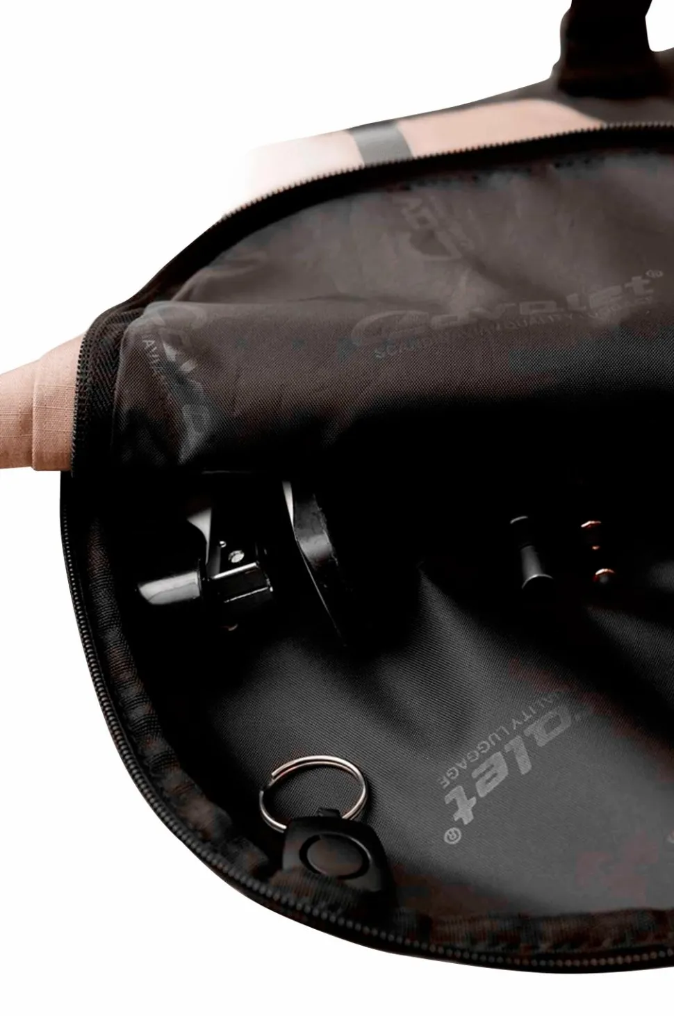 – Fås i forskellige farver med en strop til nem fastgørelse på bagagen