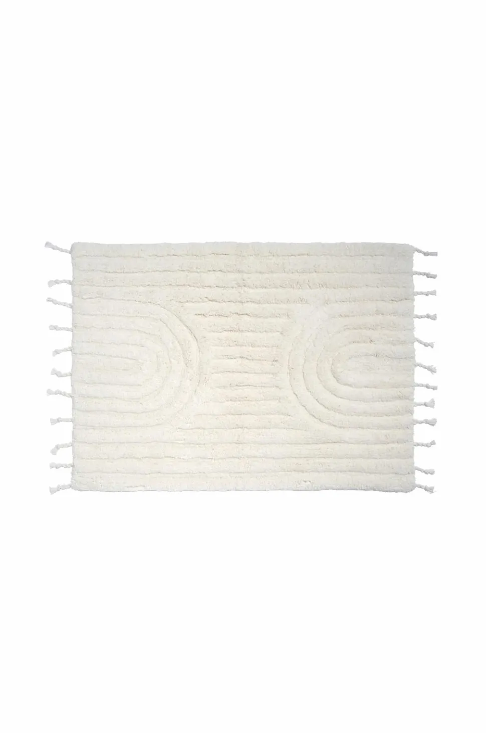 Badeværelsesmåtte Arch i skøn bomuld med højt og lavt mønster. Snoede frynser i enderne.