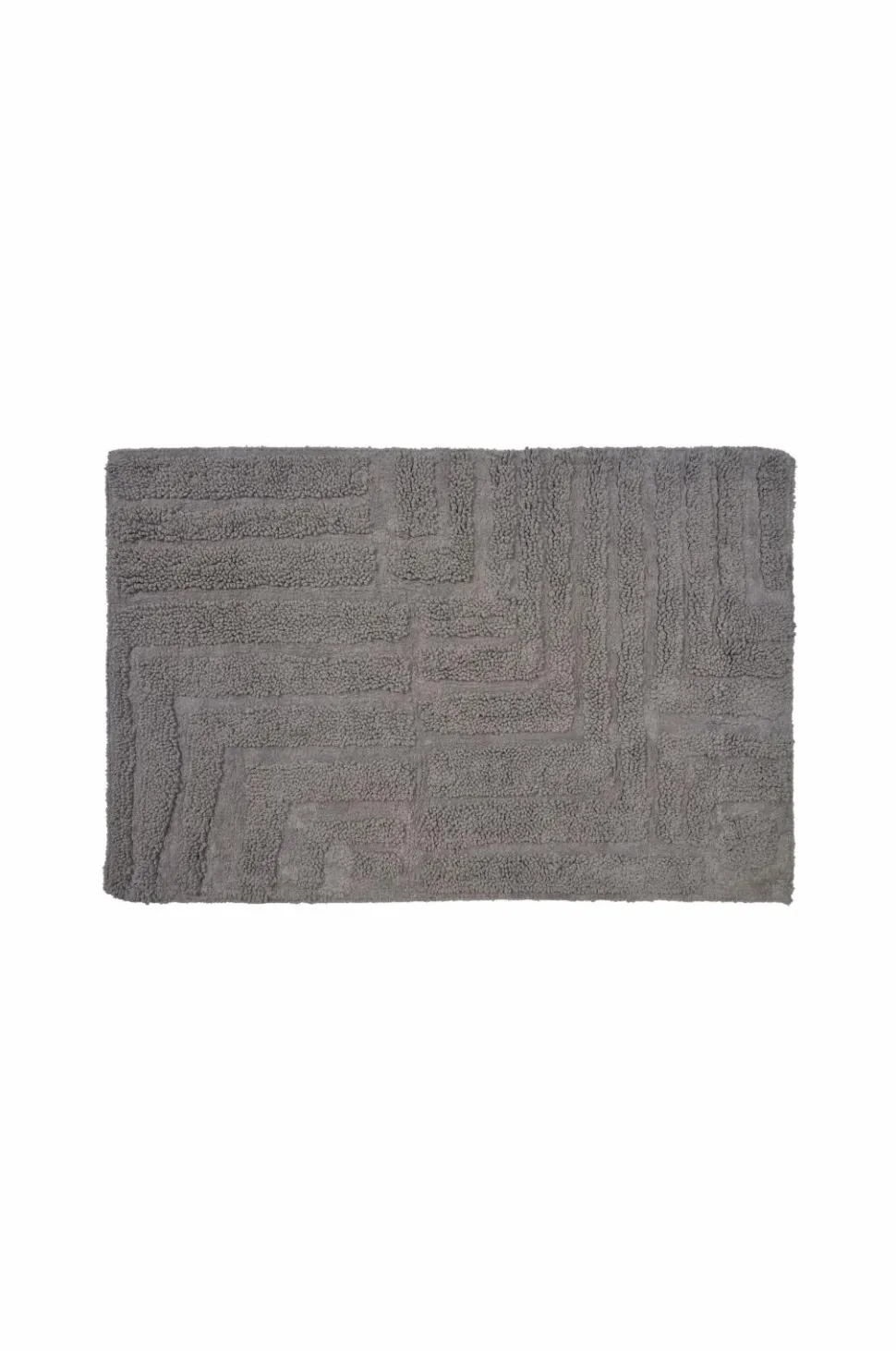 Badeværelsesmåtte med højt og lavt mønster. Det høje mønster er lavet med løkker som udgør en luv.
