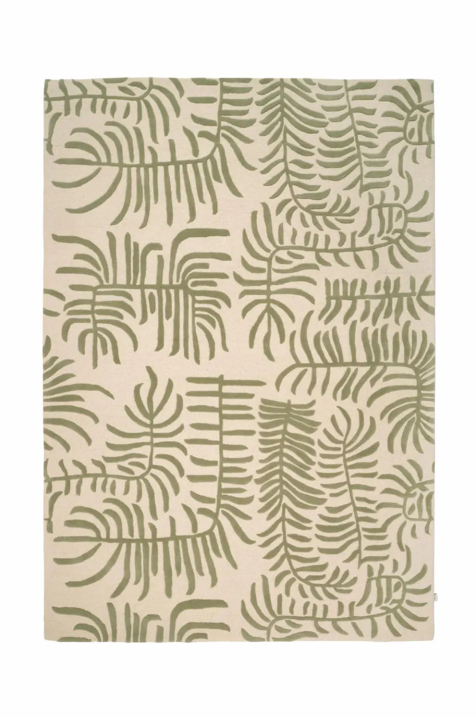 Palma Green tæppet er et eksklusivt, håndlavet uldtæppe med en tyk og blød luv.