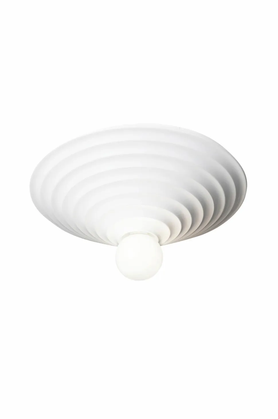 Loop 45 har lighed med en arkitektonisk roset, der bruges til at dekorere lofter i et rum. Brug en større matteret lyskilde, og lampen giver et blødt generelt lys eller en diffus atmosfærisk glød, når den er dæmpet. Den passer perfekt i rum, hvor en hængende loftslampe ikke passer ind. Meget nem at installere med et krogophæng. Designet af monika mulder. Pære og loftsstik medfølger ikke.