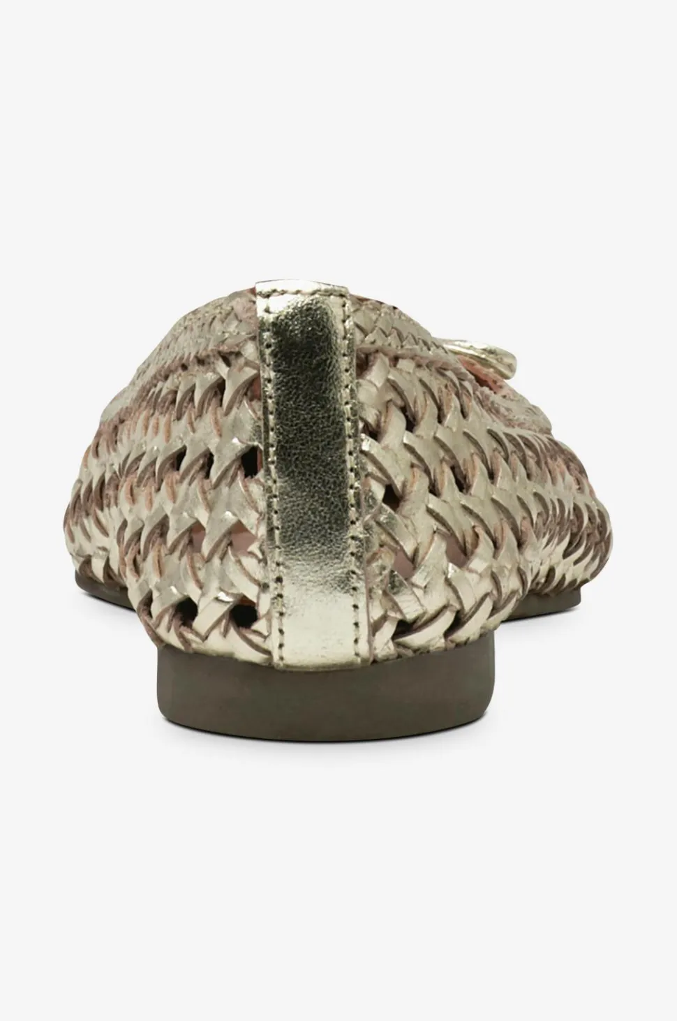 • Guldfarvede ballerinasko i læder med flettet struktur