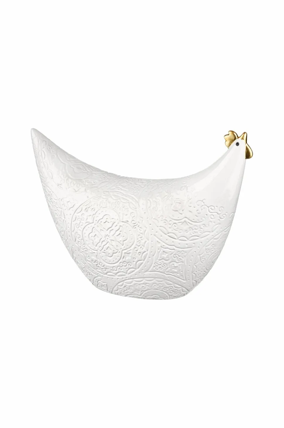 Orient OLGA. En stilfuld påskehøne i hvid keramik med gyldent næb og kam. Dekoreret med vores smukke orient mønster i relief. Designet af Marita Lord
