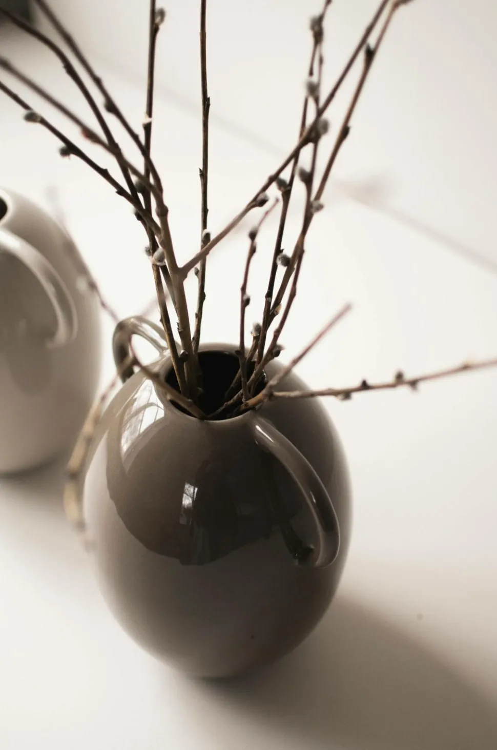 Can er en enkel, symmetrisk vase med to hanke. Fyld den med vand og dine smukkeste forårskviste.