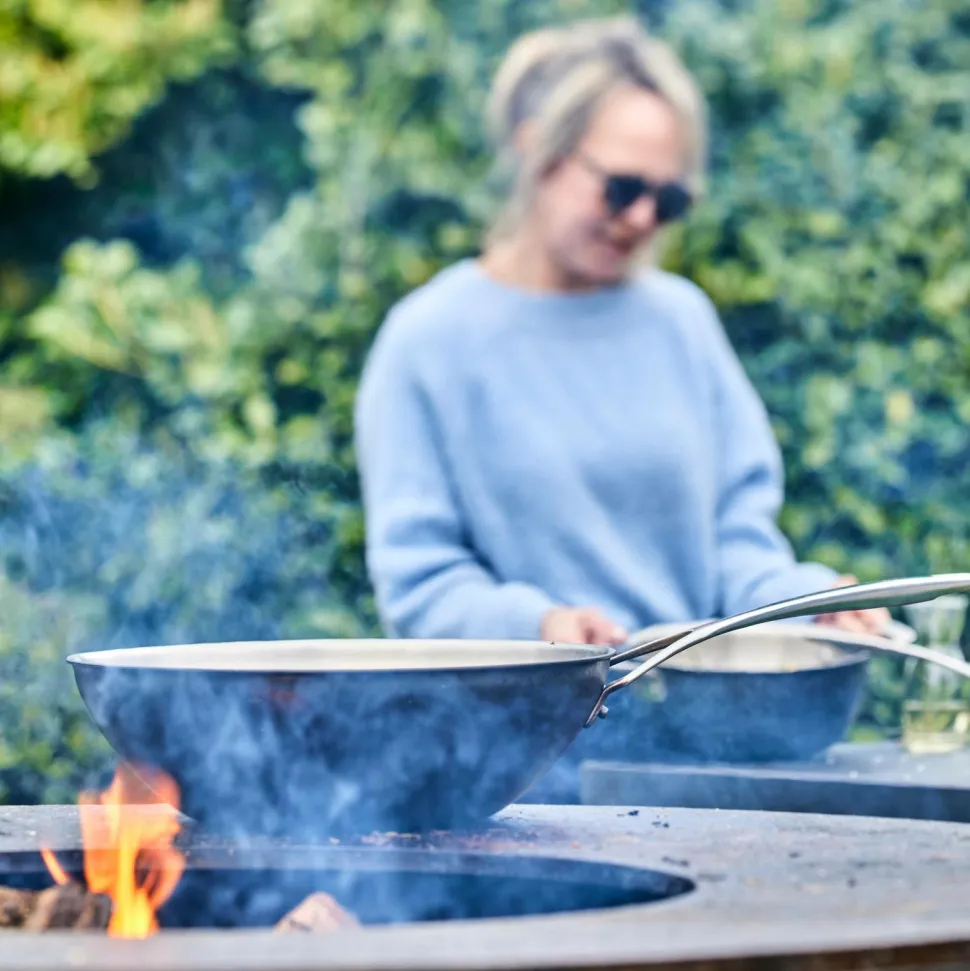 Den kolsvarta, eldfasta beläggningen kombineras mästerligt med det silverfärgade rostfria stålet. Bygget i fem lager, som bare demeyere kan, for optimal effektivitet. Med robust og smart håndtag for endnu mere brugervenlighed. Black 5 er ren kraft, både når det gælder matlagningsmuligheder og udseende. Supertillförlitlig för daglig användning inomhus och även för kulinariska äventyr utomhus.