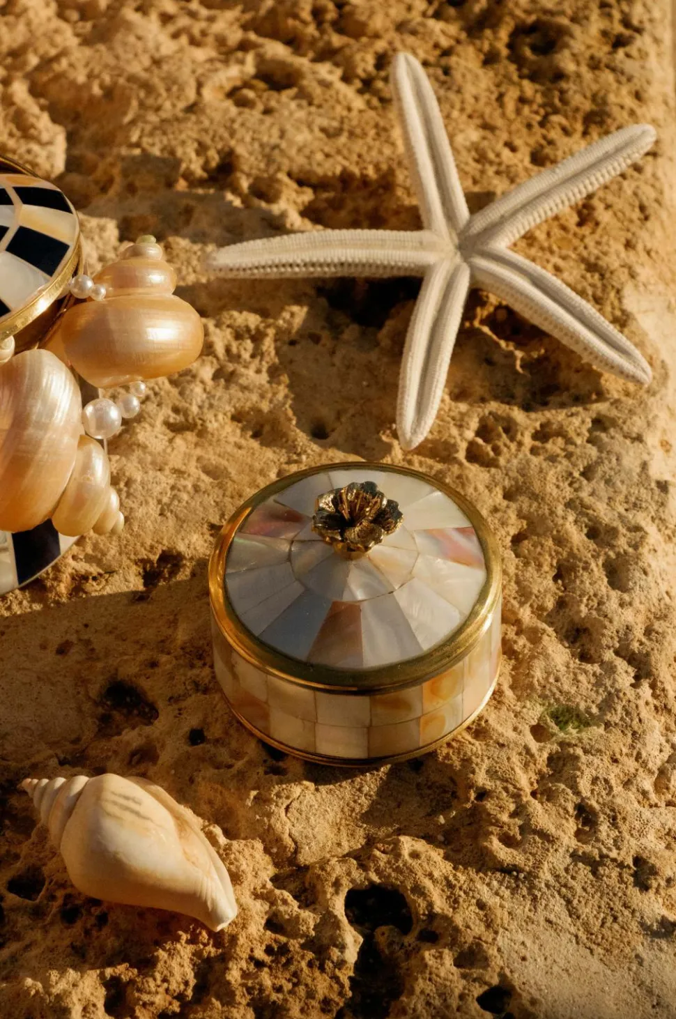 Tilføj et strejf af elegance til dit rum med Maisie Circus Box Pearly. Denne smukt håndlavede æske har en strålende off-white pearly finish kombineret med messingdetaljer, hvilket gør den både funktionel og dekorativ. Den måler 7 x 7 x 5 cm og har den perfekte størrelse til opbevaring af smykker, nipsgenstande eller andre små skatte.