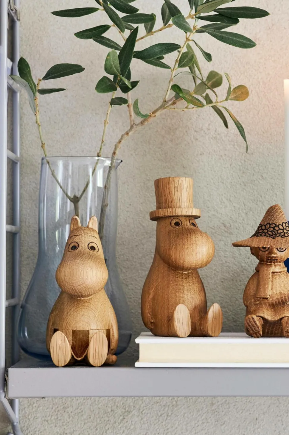 Giv dit hjem et charmerende strejf af mumitrolde med denne søde trædekoration. Figuren er en tro gengivelse af de elskede mumifigurer og er skabt med omhu og kærlighed til detaljen. Den er lavet af egetræ i høj kvalitet, hvilket giver den en varm og naturlig fornemmelse. Den perfekte detalje at placere hvor som helst i dit hjem.