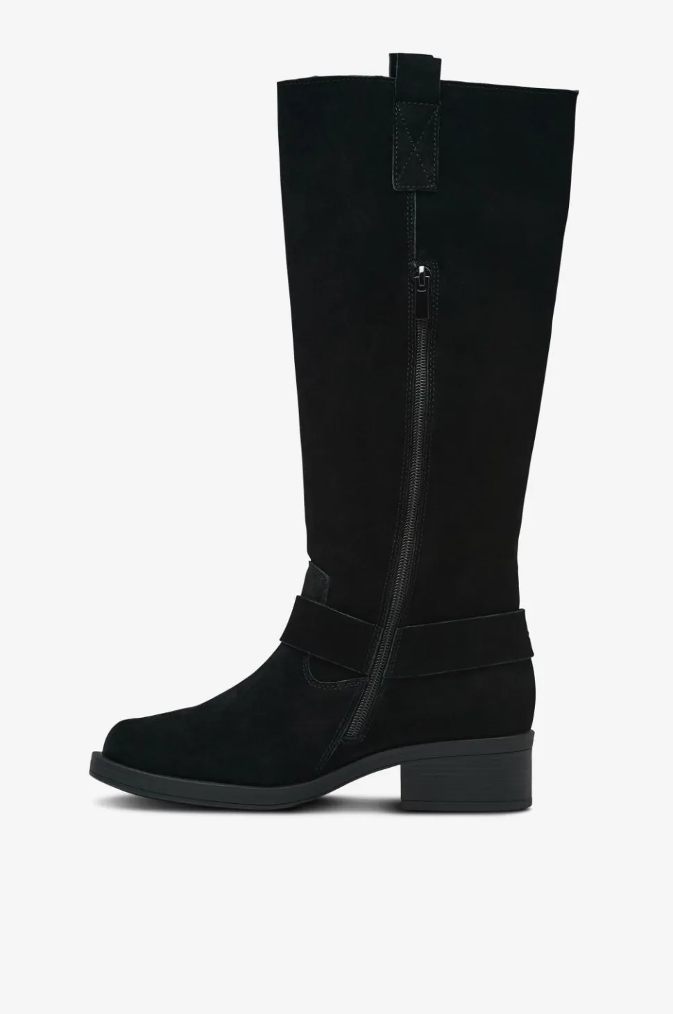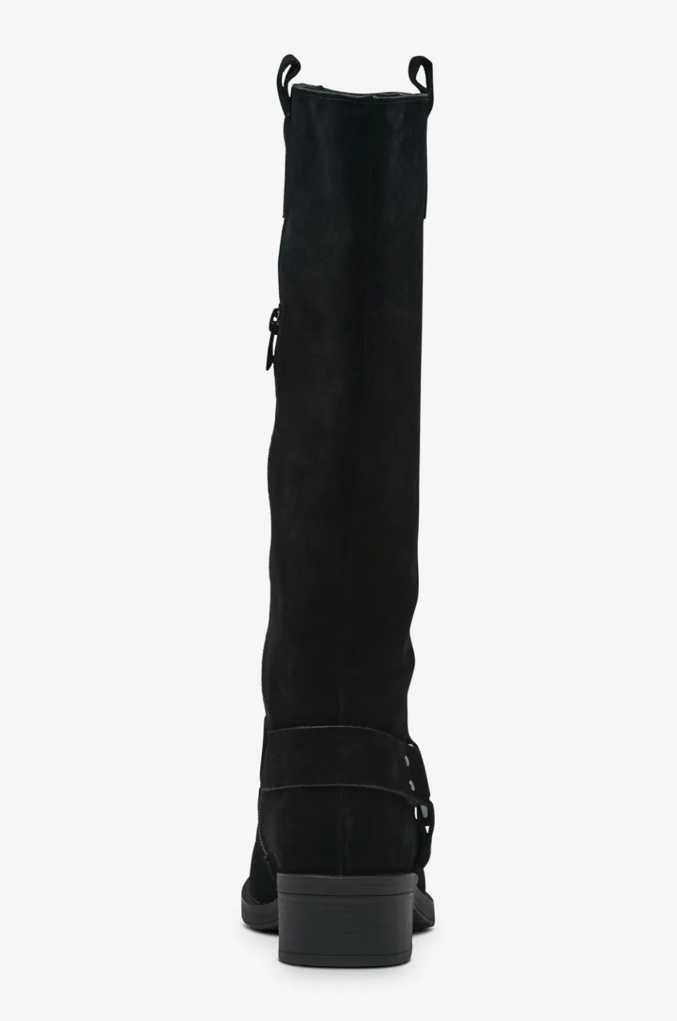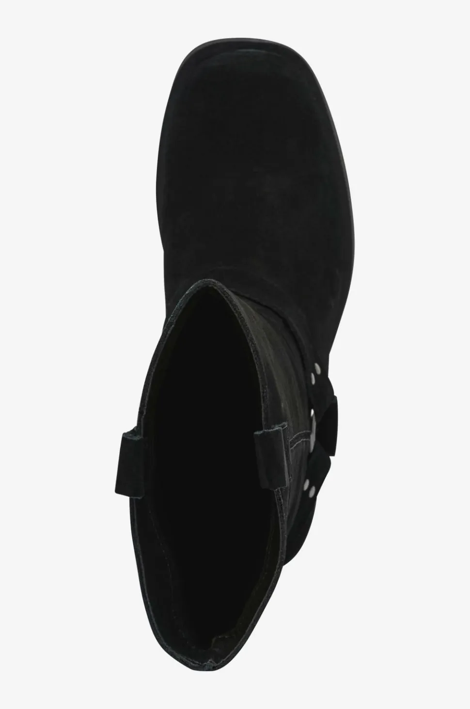 • Støvler i ruskind med dekorative remme på skaftet