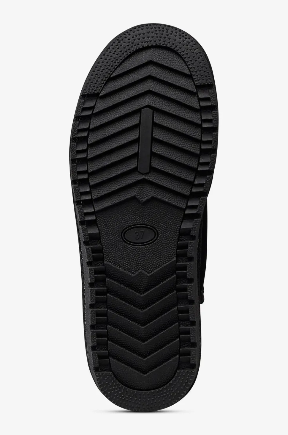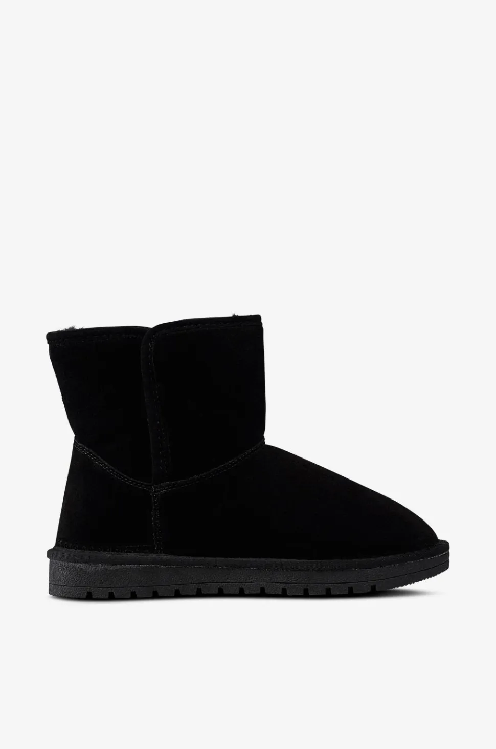 Vinterboots fra Duffy. Skønt og blødt for af kunstpels i hele støvlen. Overdelen i ruskind har slids på begge sider af skaftet. Tekstilkant i sålekanten. Tyk og skridsikker sål, der isolerer mod kulde fra jorden.