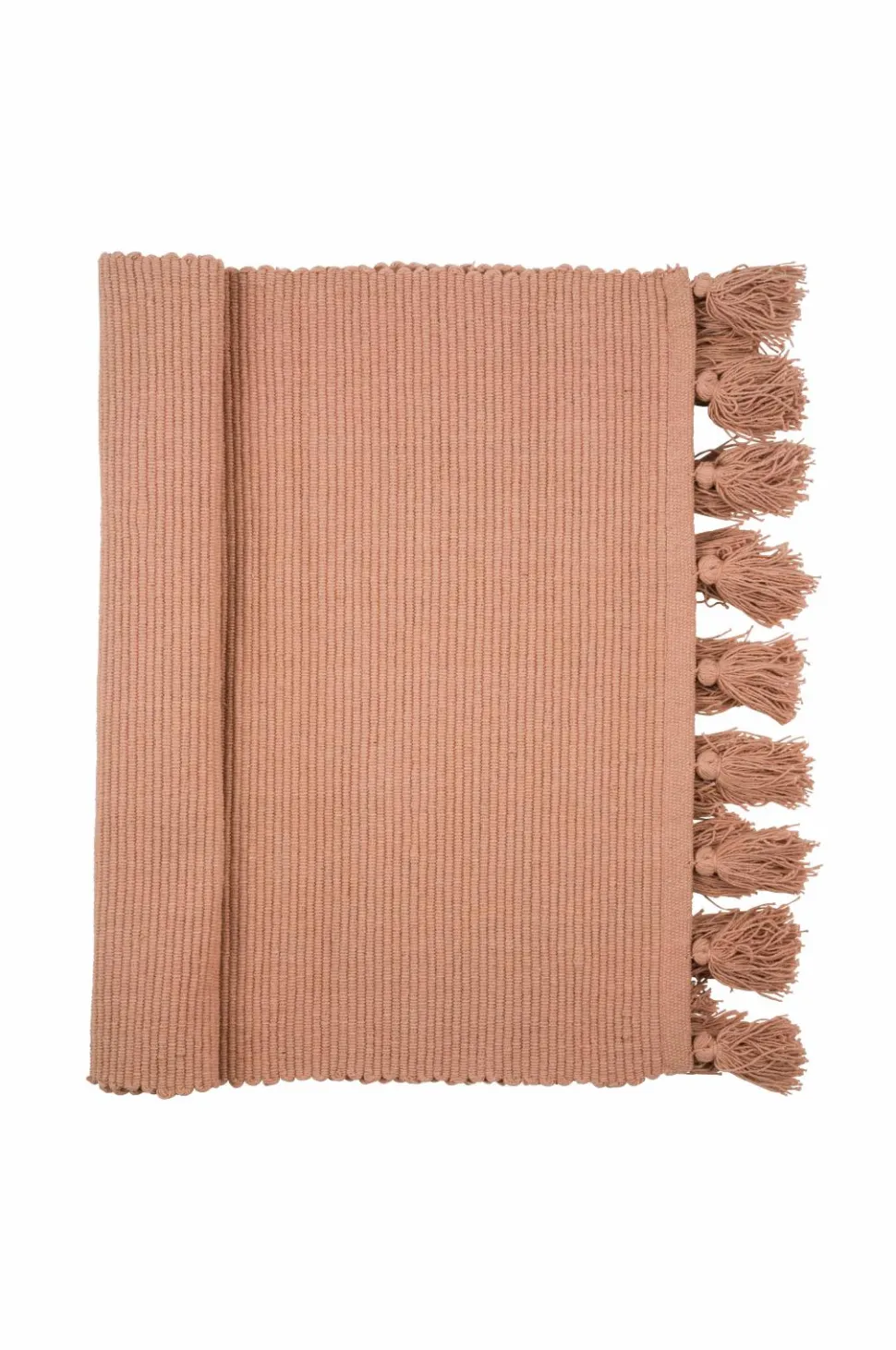 Gulvtæppe i 100% bomuld med kvaster på de korte sider. Kemisk rens.