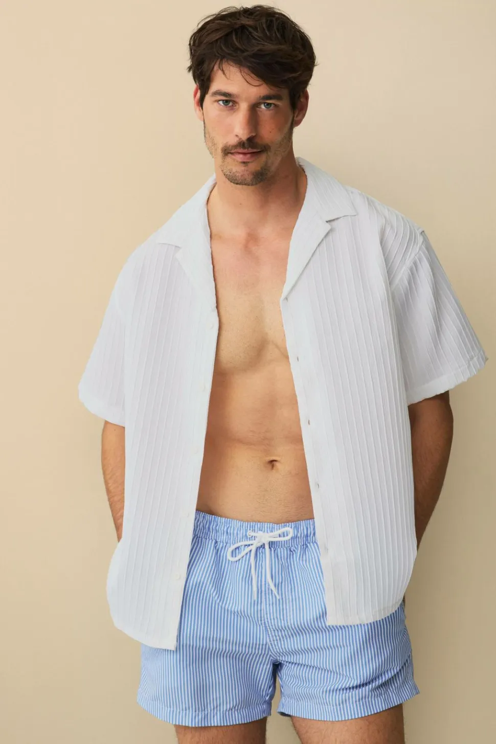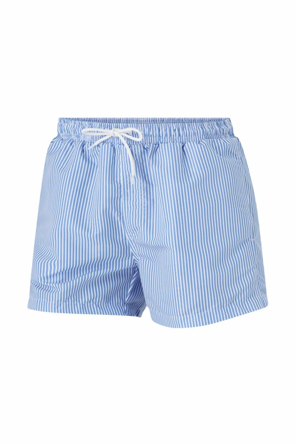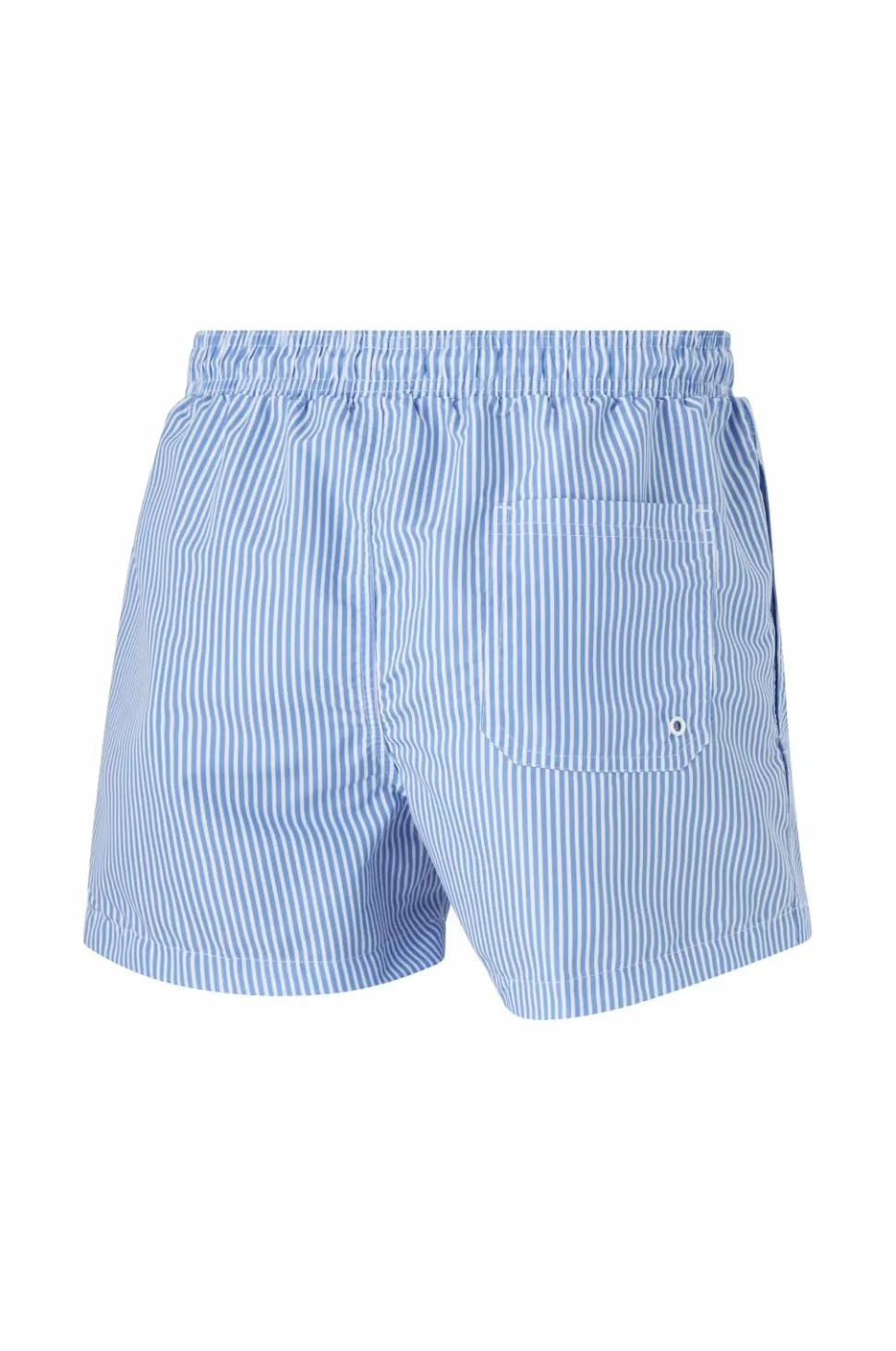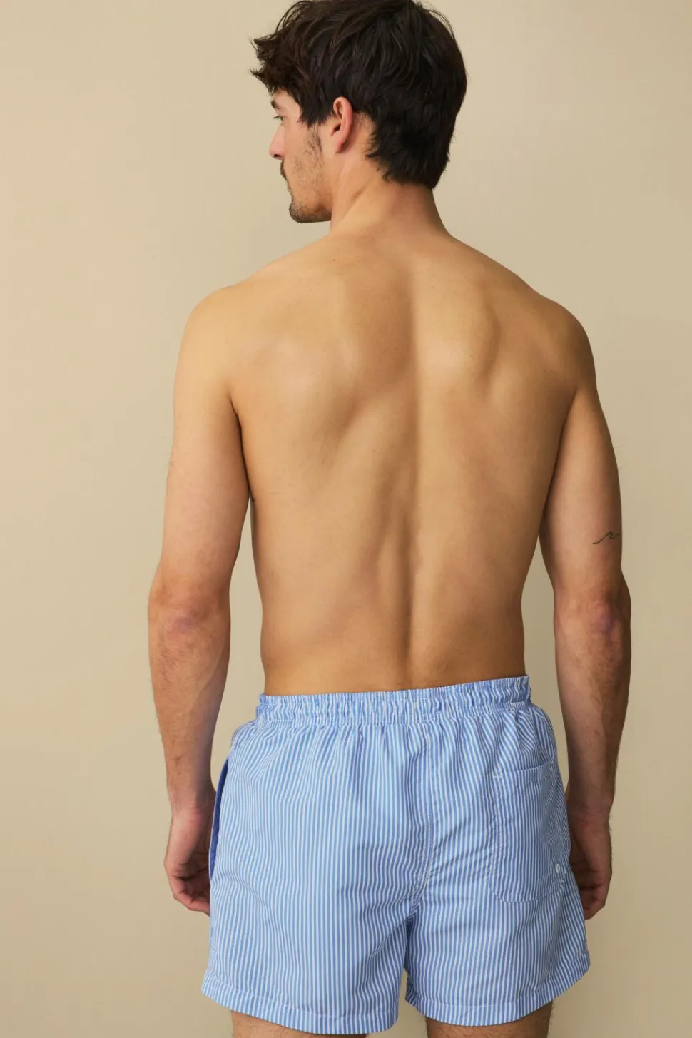 • Stribede badeshorts i polyester med elastisk talje og træksnørre
