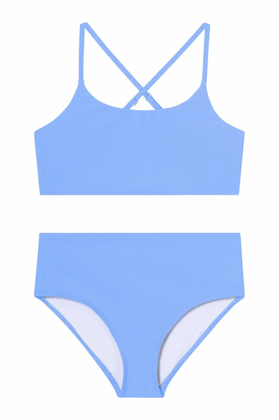 • Bikinioverdel med justérbar, krydsende, tynd skulderstrop og afrundet halsudskæring
