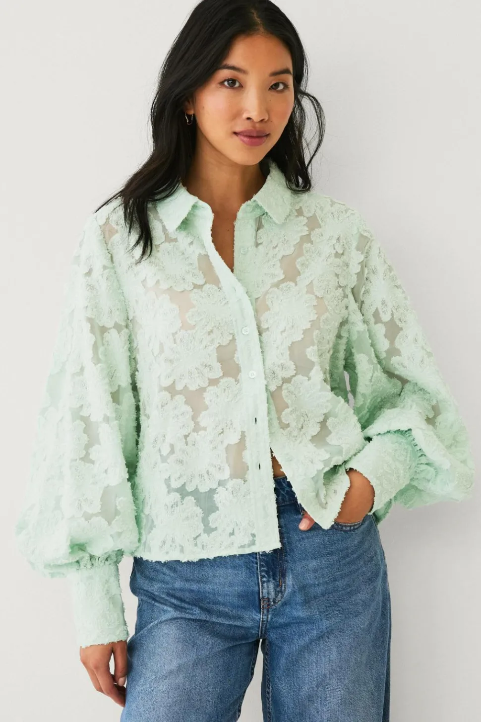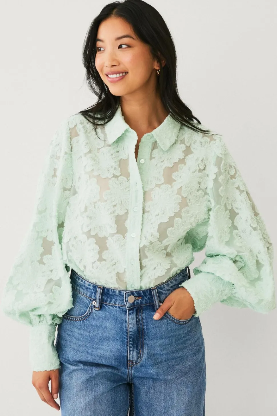 • Transparent stof med broderet mønster