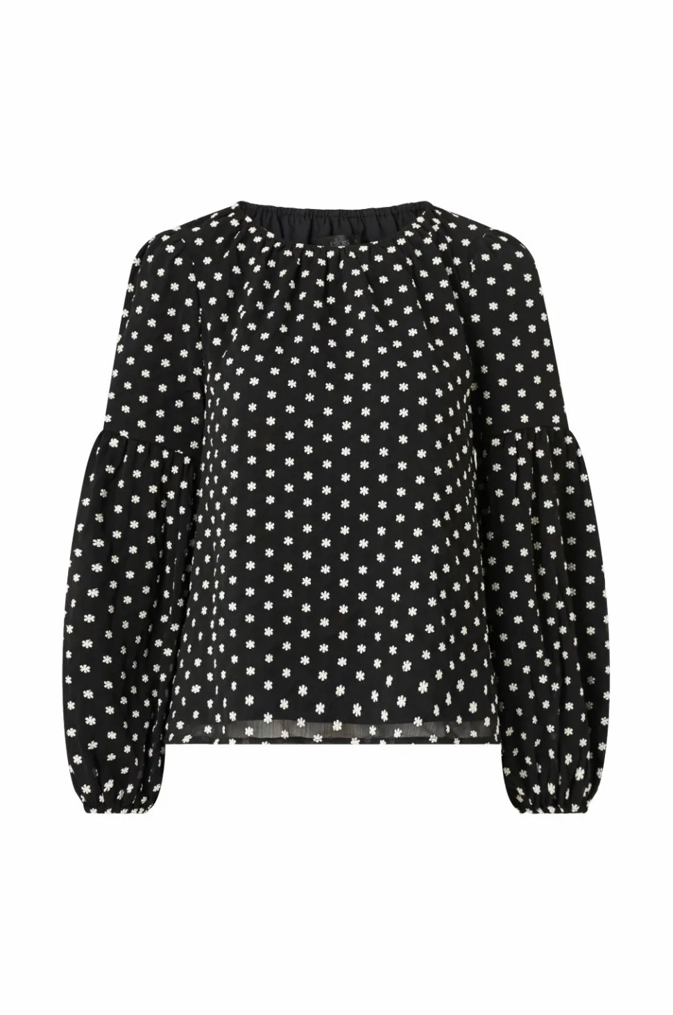 • Langt ballonærme med elastik ved manchetterne og dekorativ søm med en bølgeformet effekt