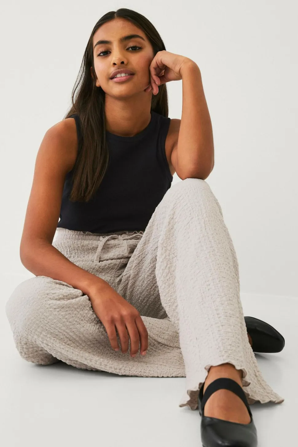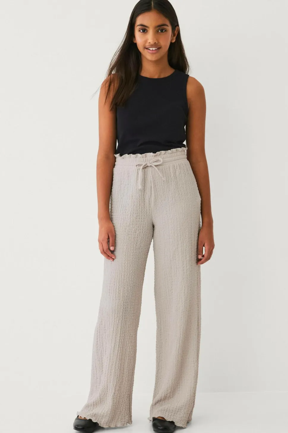 • Brede bukser i blød, boblet kvalitet