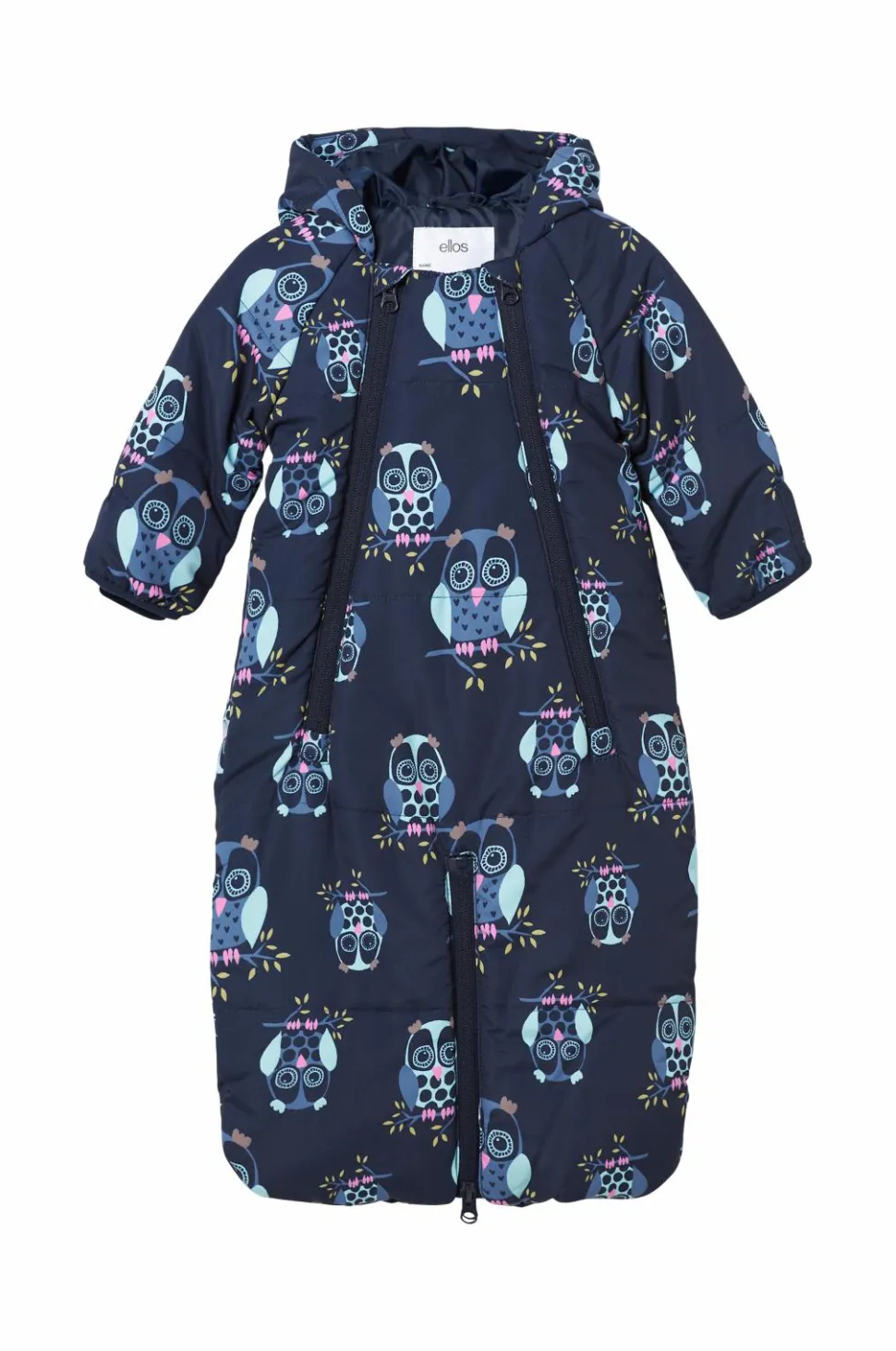 Varmt vatteret babydragt / kørepose med to lynlåse foran. En 2-vejslynlås i bunden som gør at dragtens også kan blive til en kørepose. Fast hætte. Bløde, elastiske kantbånd i ærmekant.
