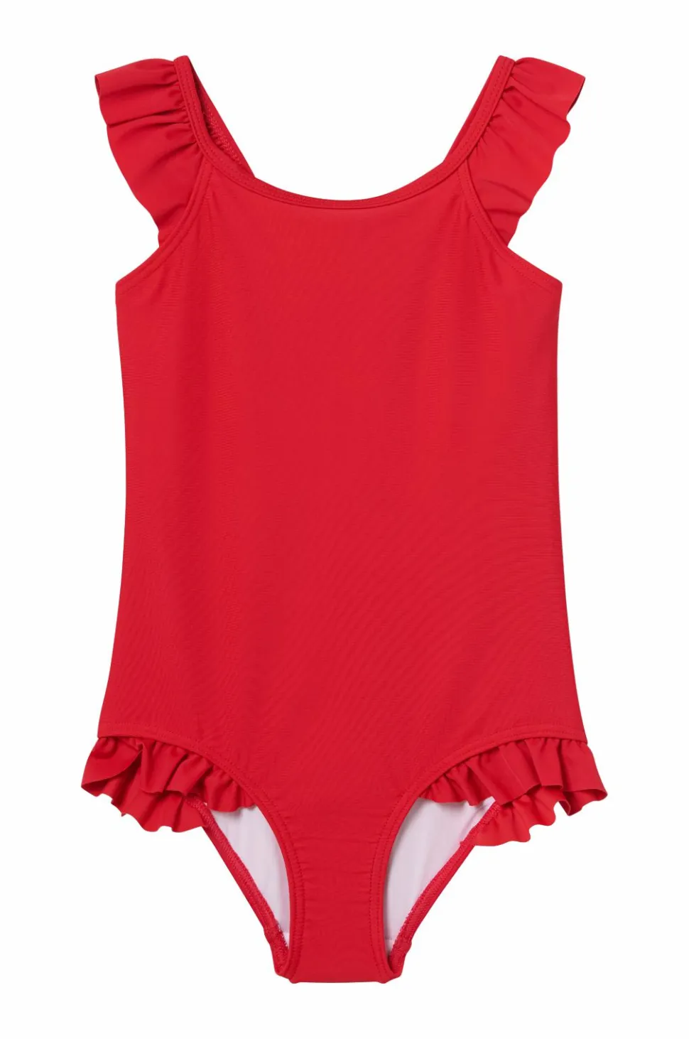 • Bølget flæsedesign på benåbningerne, foran og bagpå med v-udskæring i ryggen