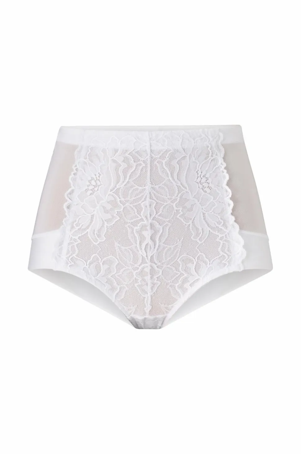 Formende trusse i høj model. Stilfuld blonde midt foran med en indvendig foring i stærkt mesh, som holder maven inde og gør den behagelig at have på. Blød, skinnende mikrofiber bagpå og omkring benene giver en glidende overgang til benene.