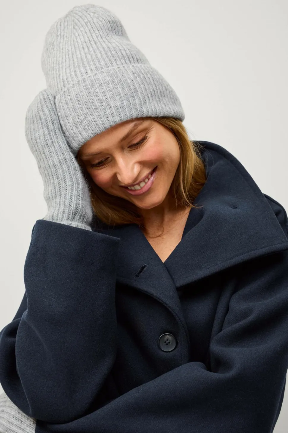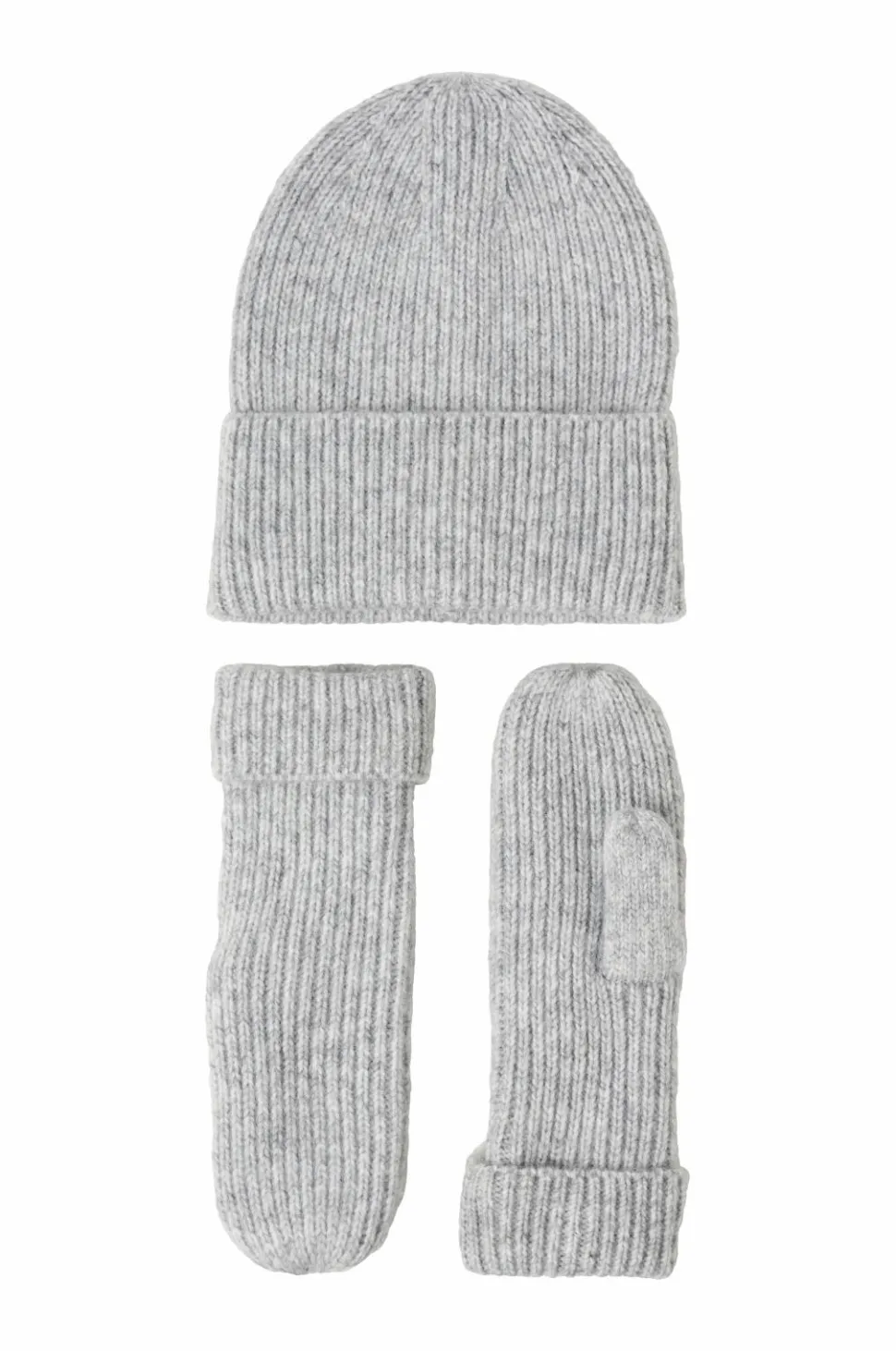 • Ribstrikket sæt med hue og vanter