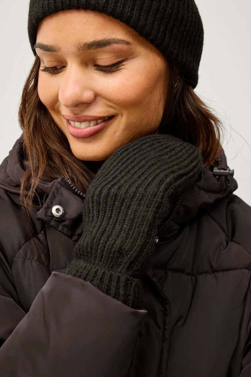 • Ribstrikket sæt med hue og vanter