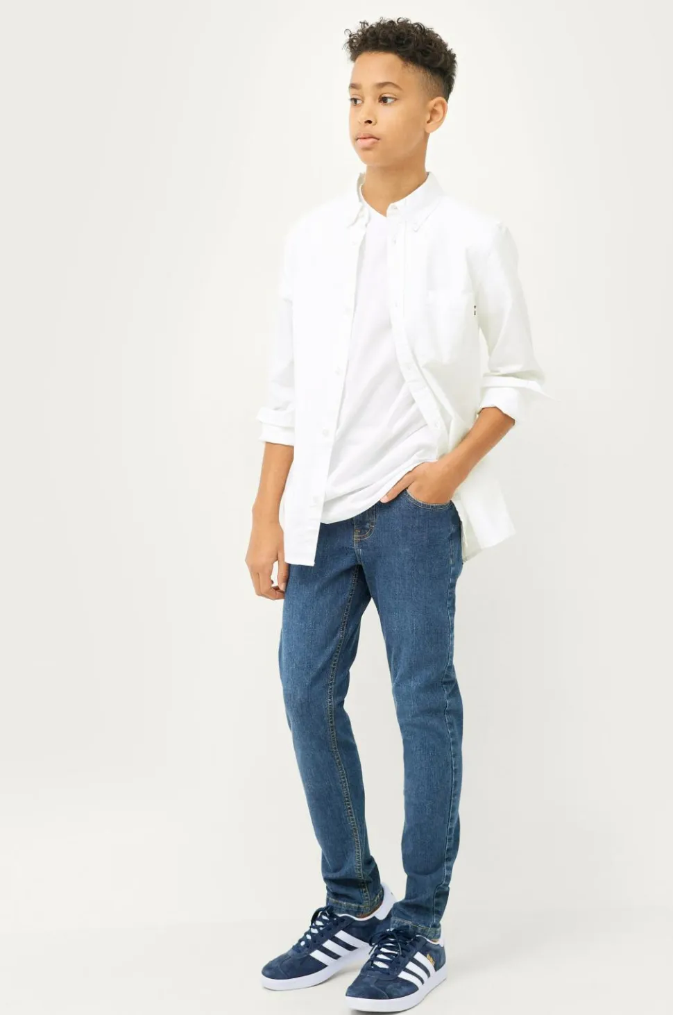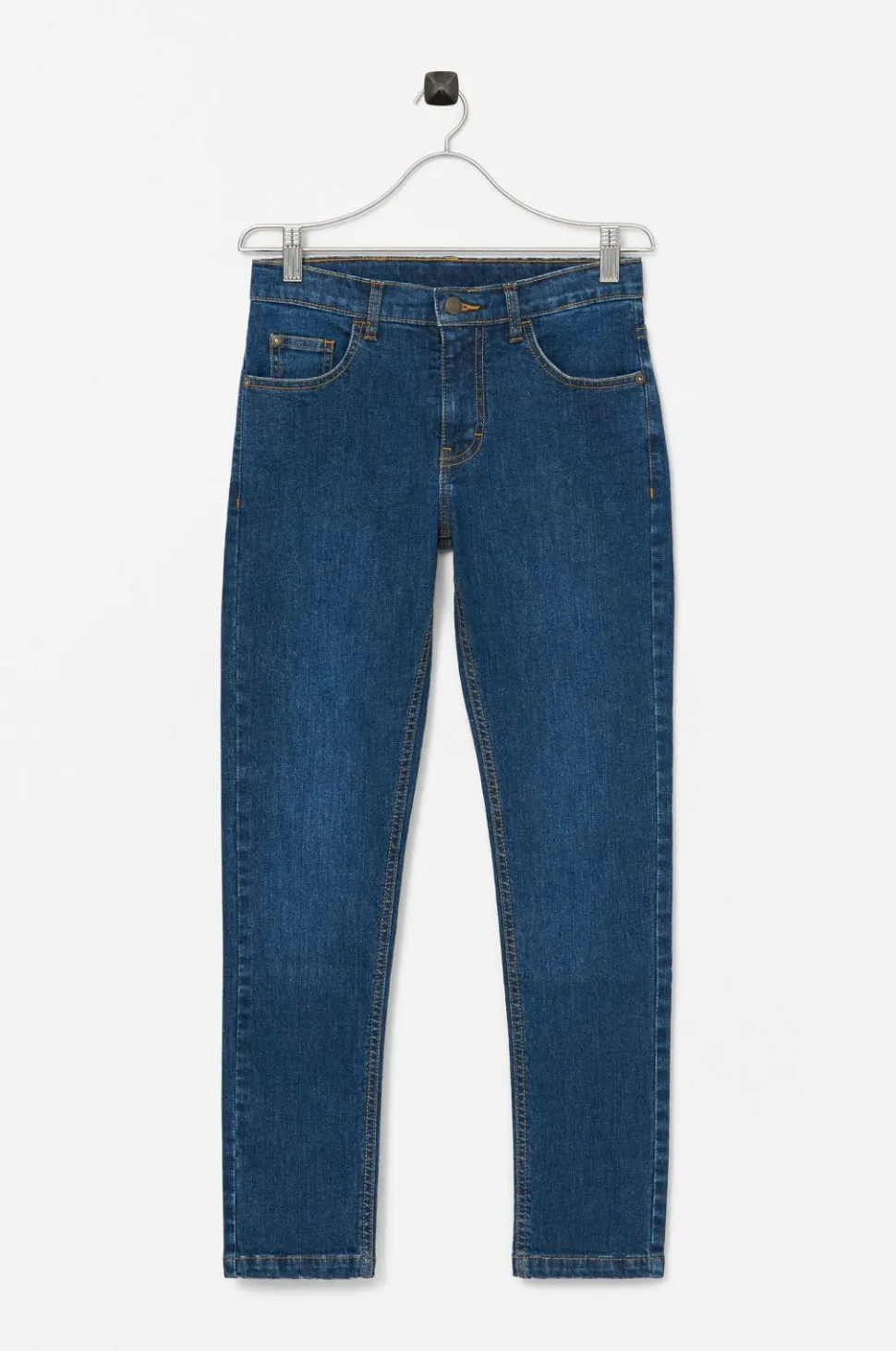 Jeans Cruz Slim i skøn stretchdenim. Smal model med bukseben der bliver lidt smallere nedefter og fem klassiske lommer. Linning med stropper. Indsat elastik som er justerbar på indersiden i størrelserne 134-146.