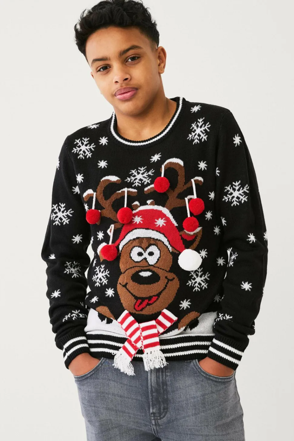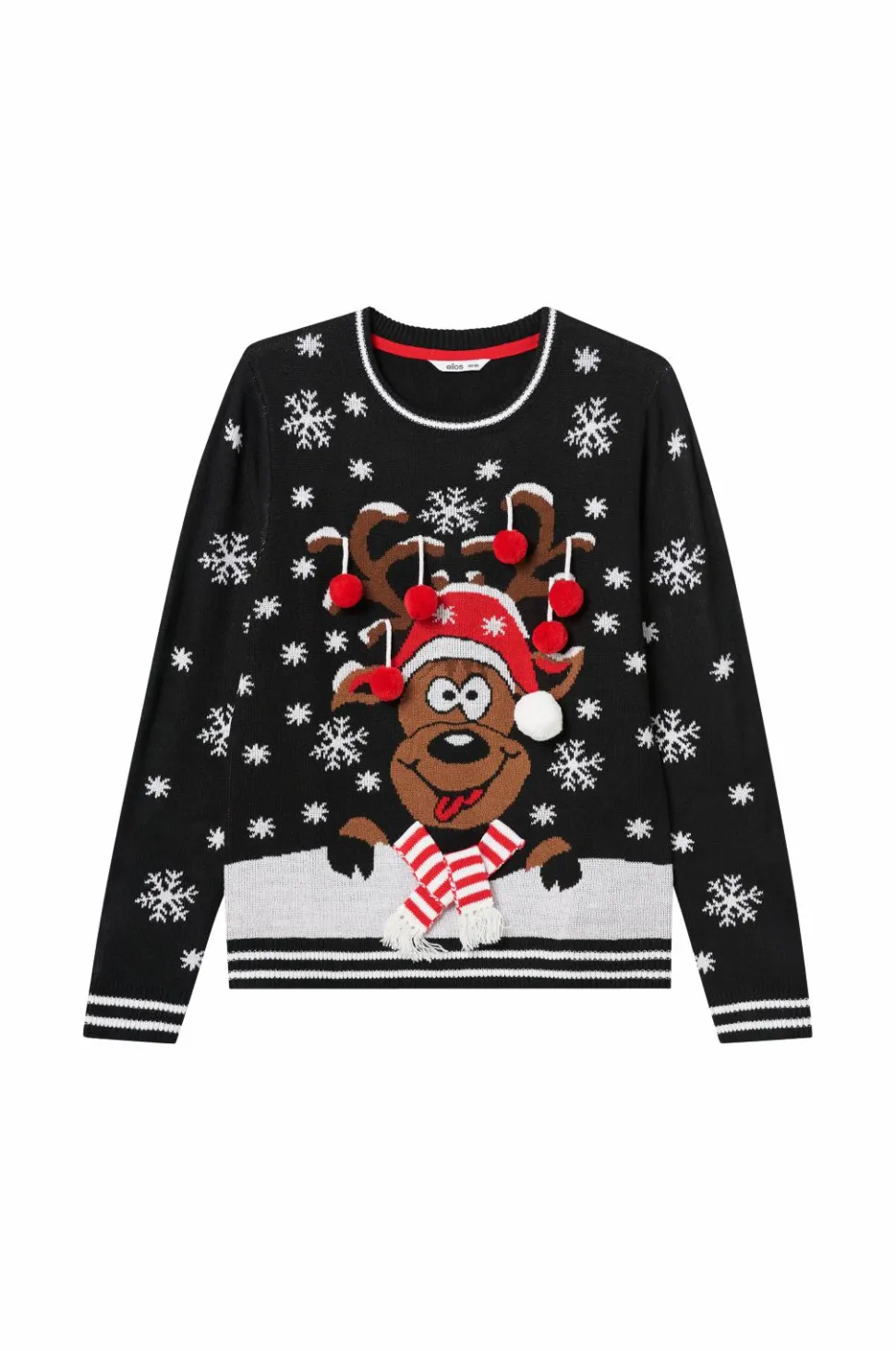 Juletrøje Christmas i blød, strikket kvalitet med julemotiv. Ribstrikket kant forneden, i ærmekant og hals.