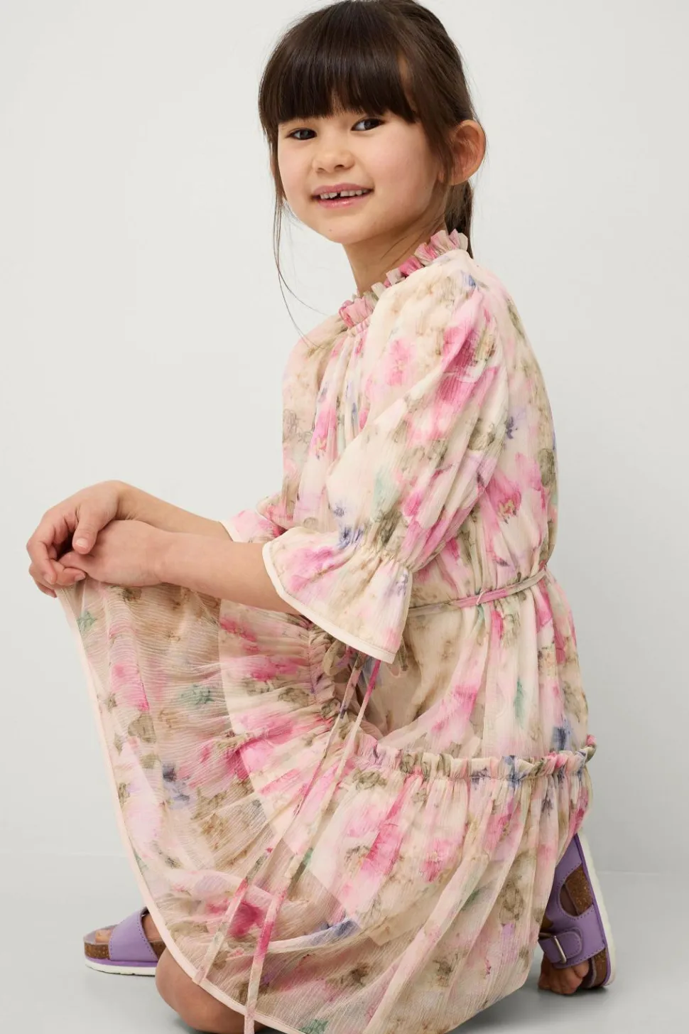 • Kjole i rynket chiffon
