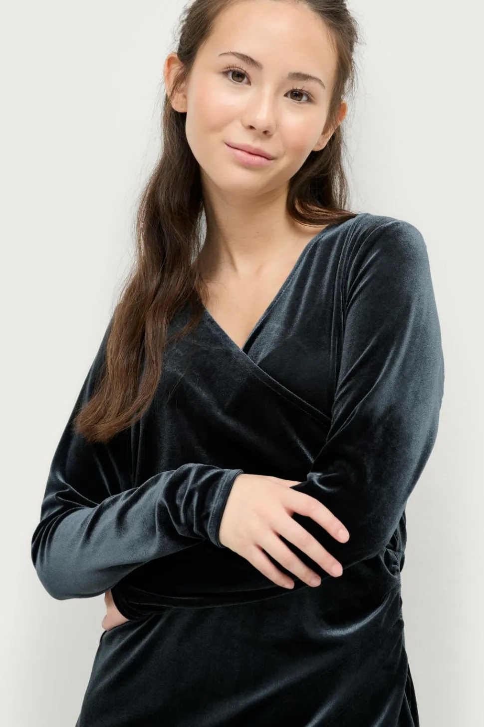 • Model i velour med slå-om design