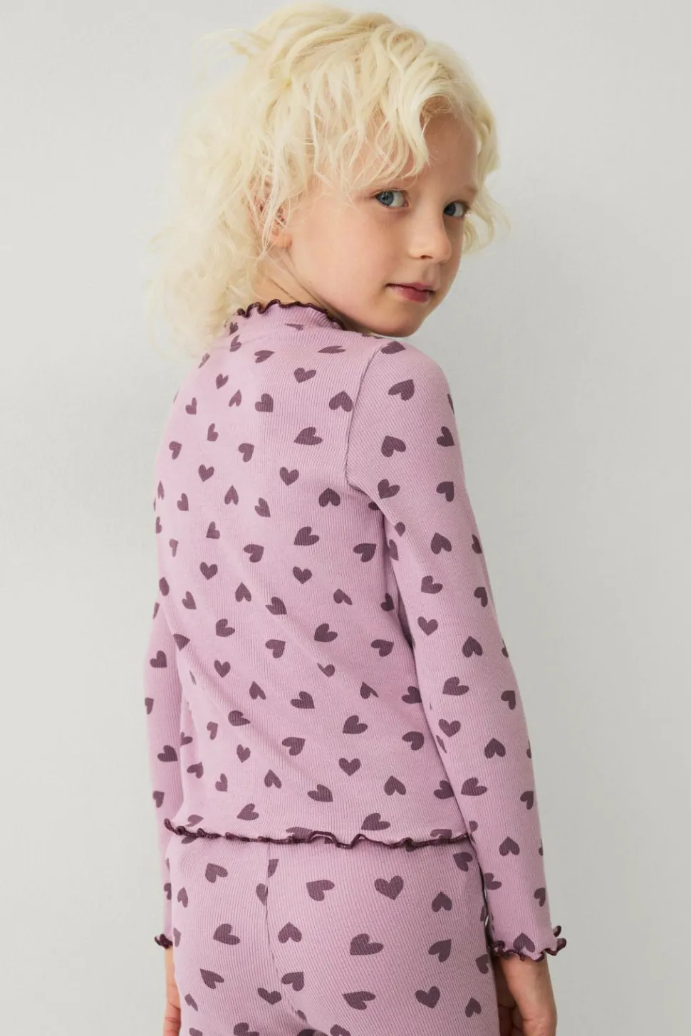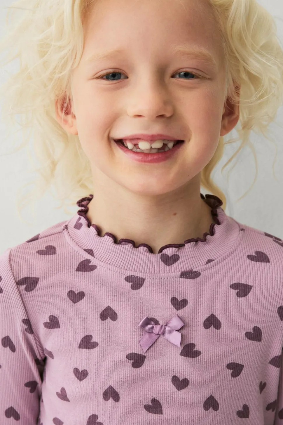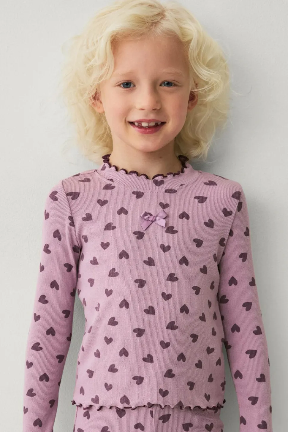 • Ribbet top med printede hjerter