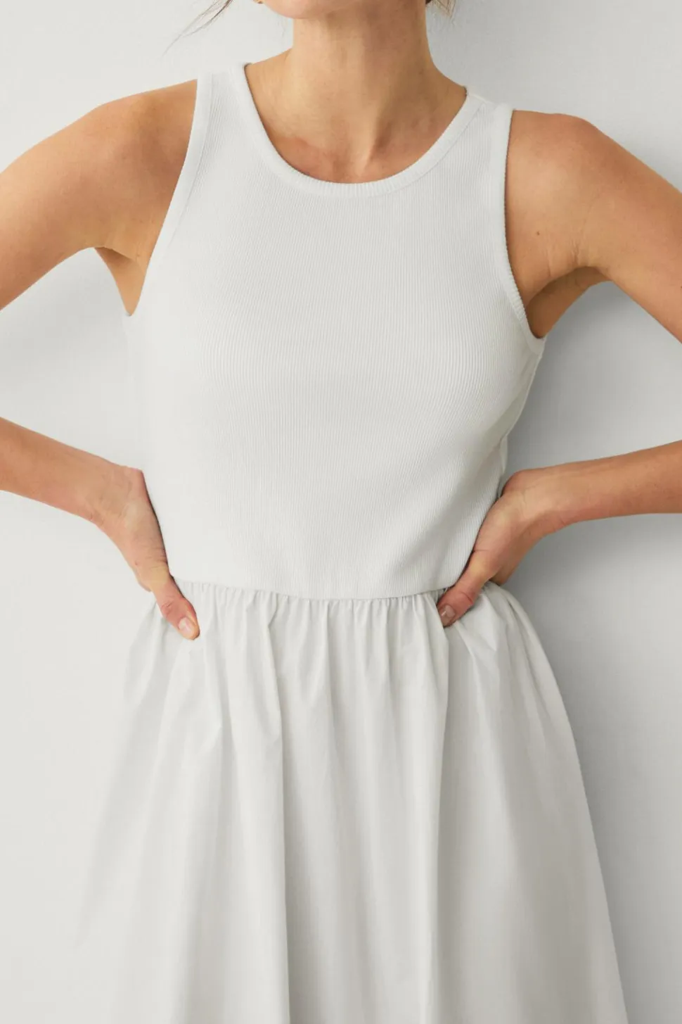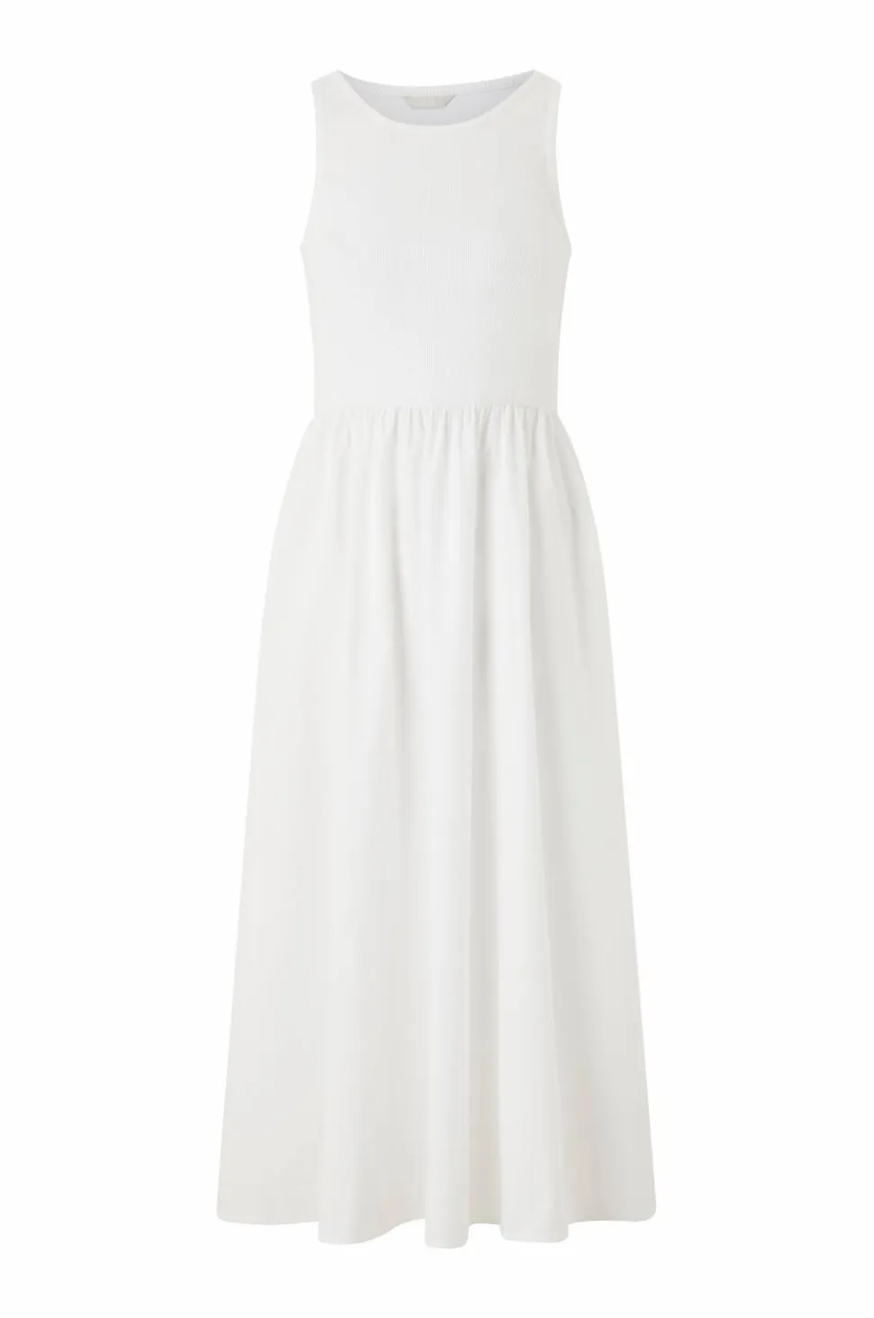 • Ærmeløs, ribstrikket, figursyet øvre del