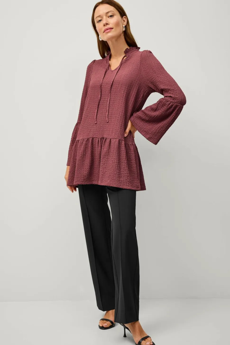 • Langt ærme med svaj