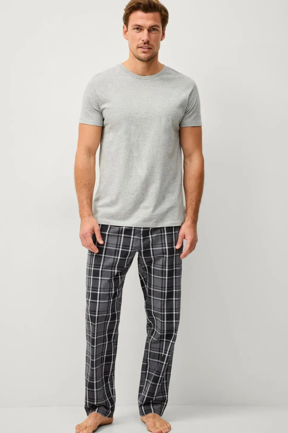 • Ternete natbukser i bomuldspoplin