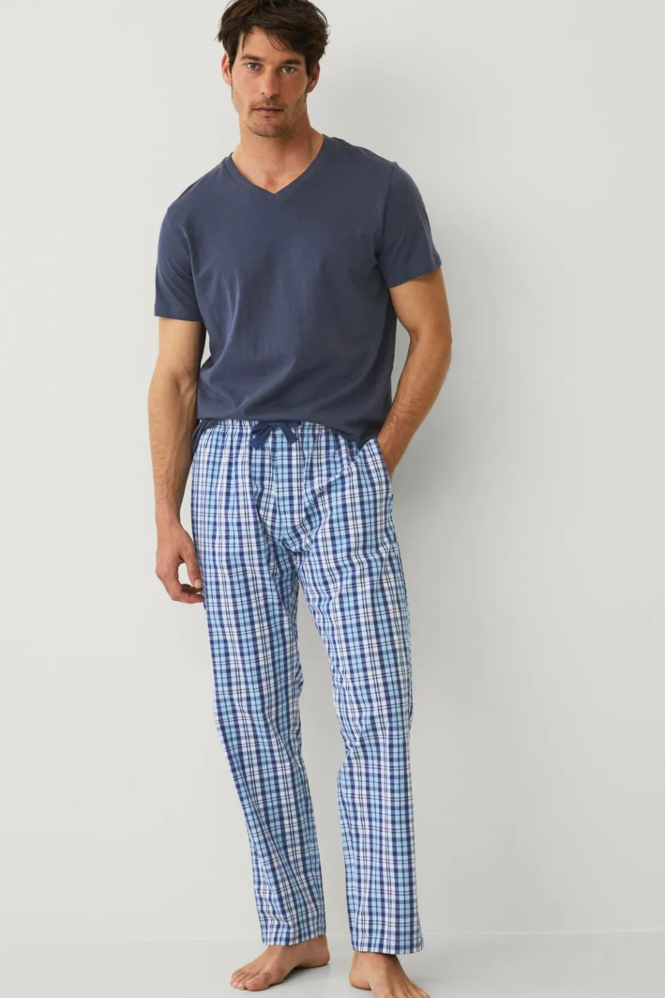 • Ternete natbukser i bomuldspoplin