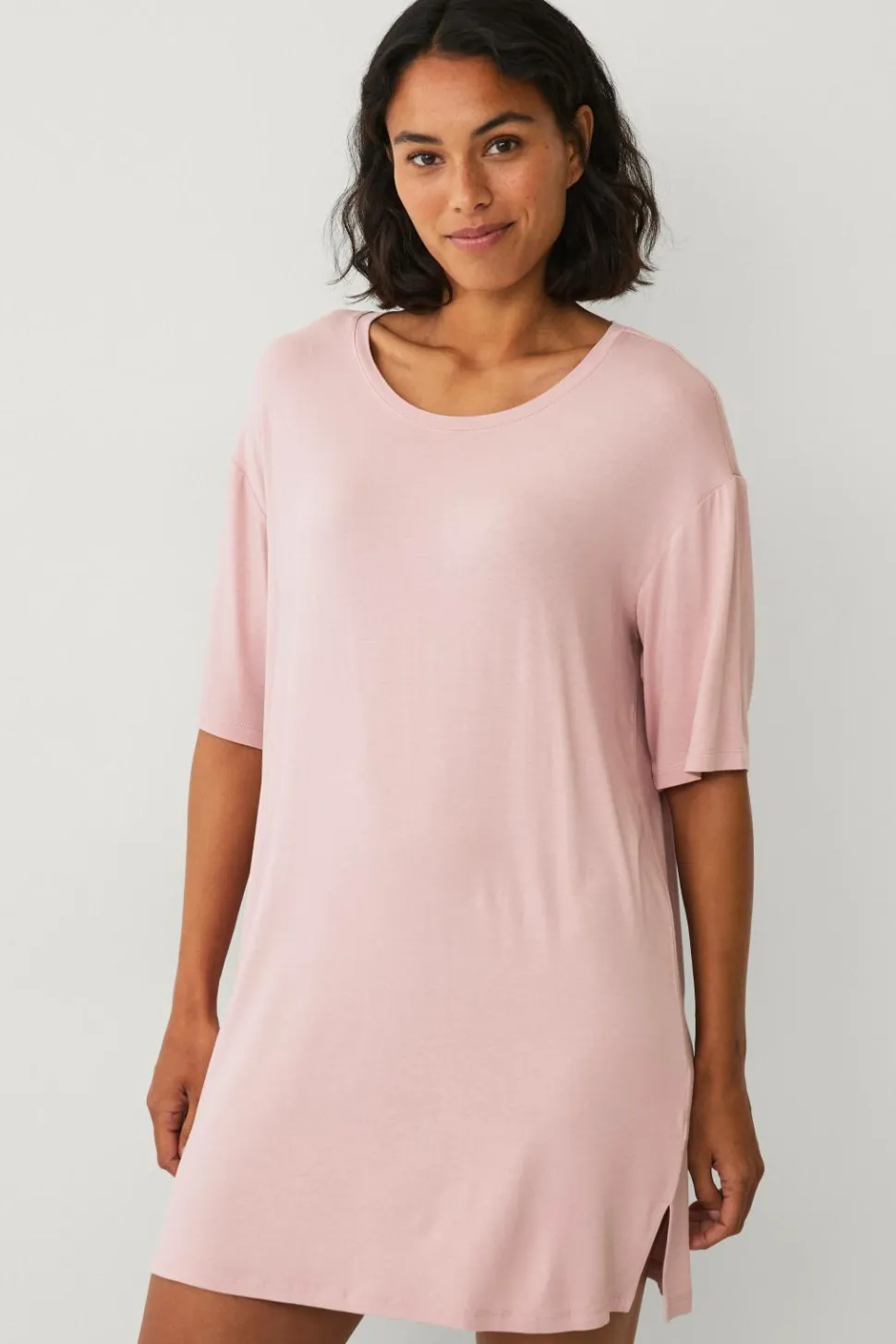 • Pyjamas t-shirt i blød jersey med lang, oversized, lige model