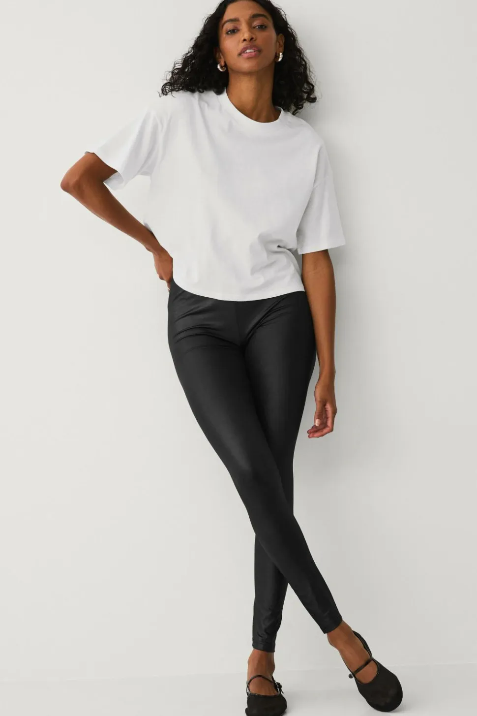 • Leggings med skinnende, belagt overflade