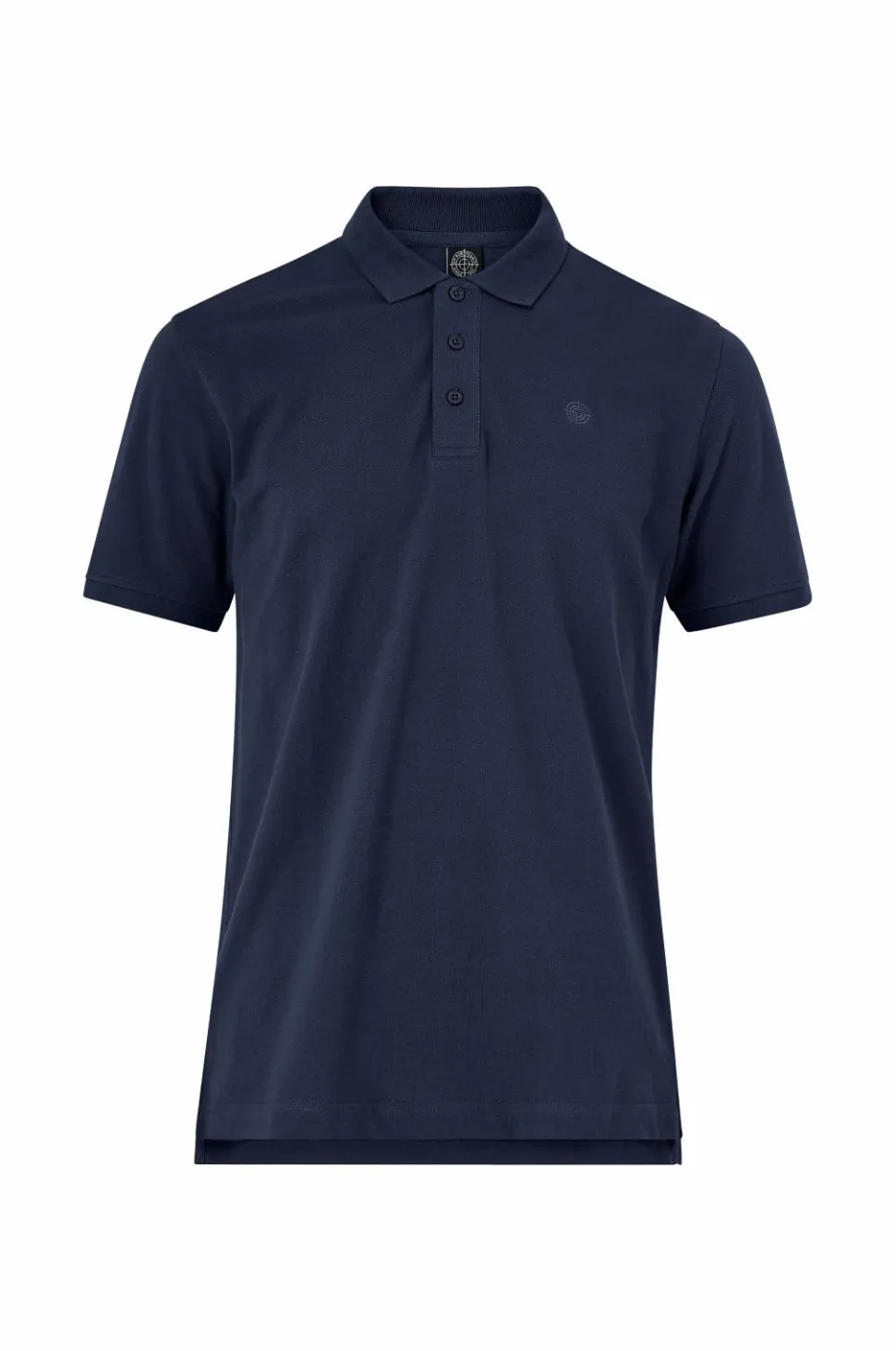 Poloshirt Clark fra On Our Terms i klassisk model med krave i rib og stolpelukning med tre knapper. Ribkanter i ærmerne og lille broderi på brystet. Slids i siderne og noget længere bagpå.