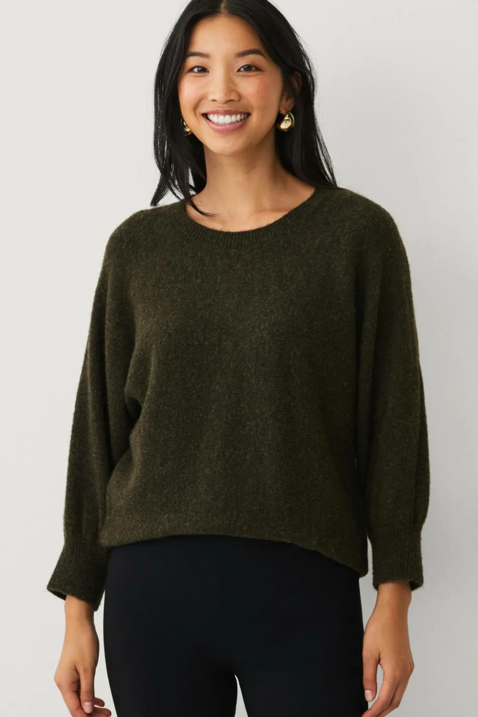 • 3/4 lange flagermusærmer med ribbede ærmeafslutninger